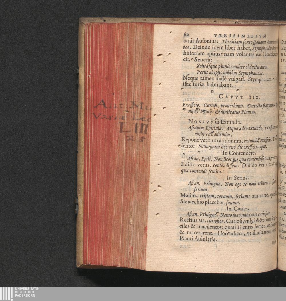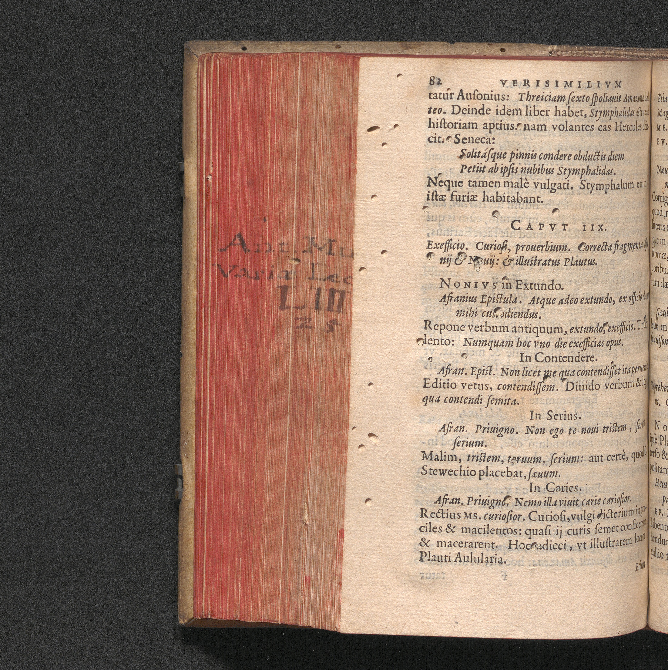 Cap. IIX. Exefficio. Curiosi, prouerbium. Correcta fragmenta Afranij & Nӕuij: & illustratus[...]