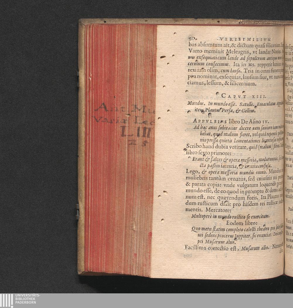 Cap. XIII. Mundus. In mundo esse. Satullè. Emaculatus Appuleius: item Plautus Persa,[...]