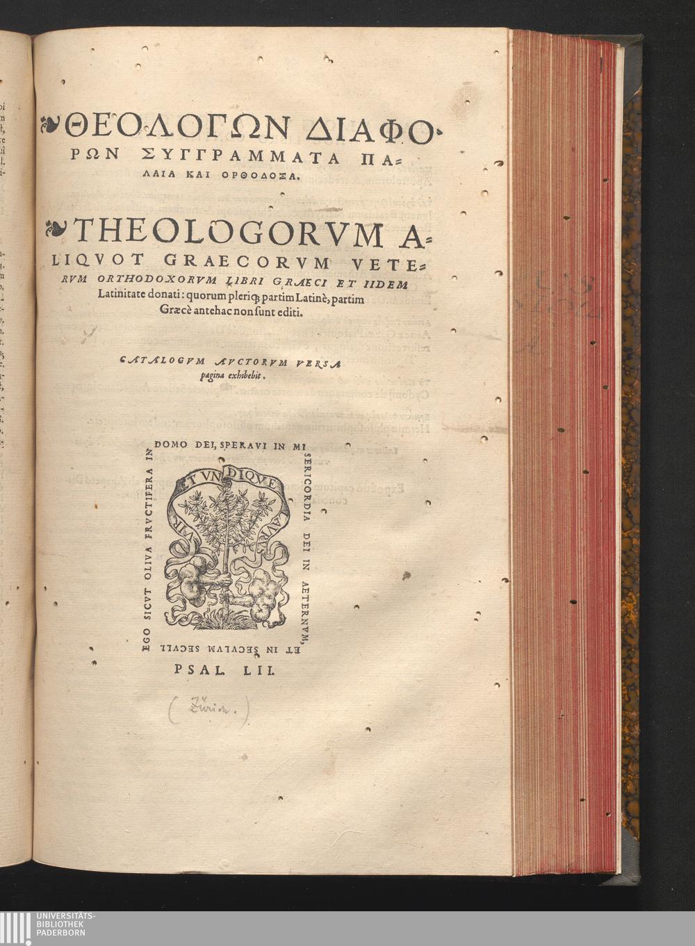 Theologōn diaphorōn syngrammata palaia kai orthodoxa / [Ed.: Conrad Gesner]