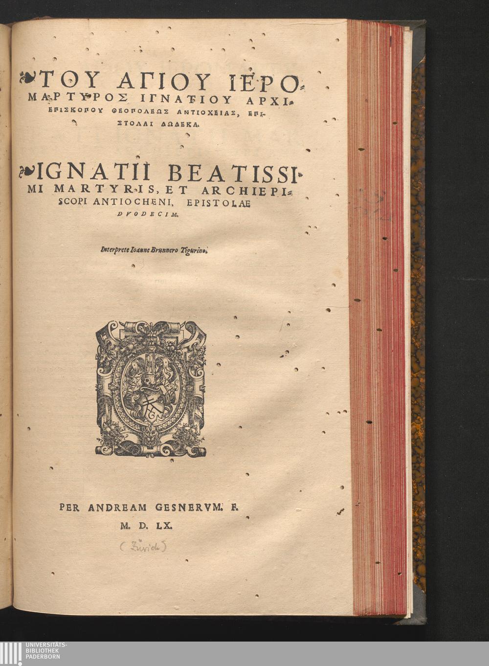 Ignatii Beatissimi Martyris, Et Archiepiscopi Antiocheni, Epistolae Dvodecim. Interprete[...]