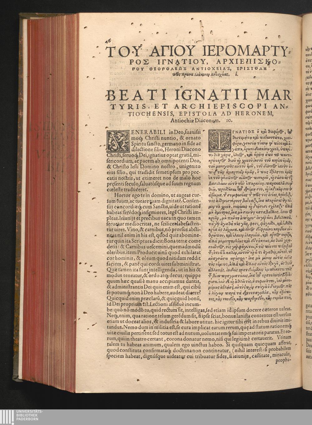 Beati Ignatii Martyris, Et Archiepiscopi Antiochensis, Epistola Ad Heronem, Antiochiæ[...]