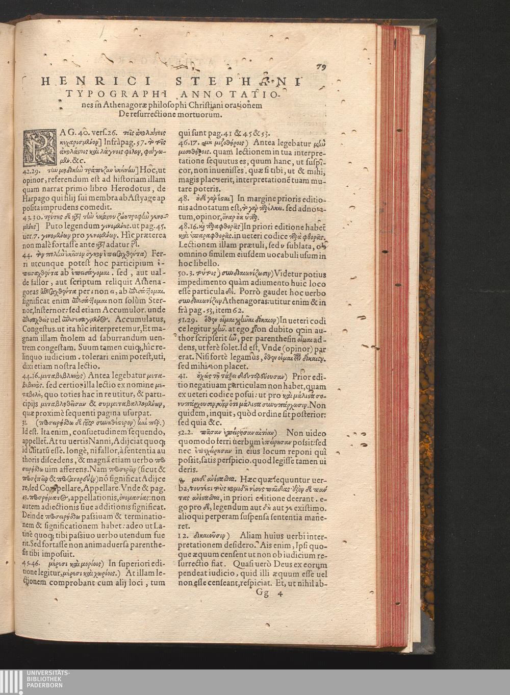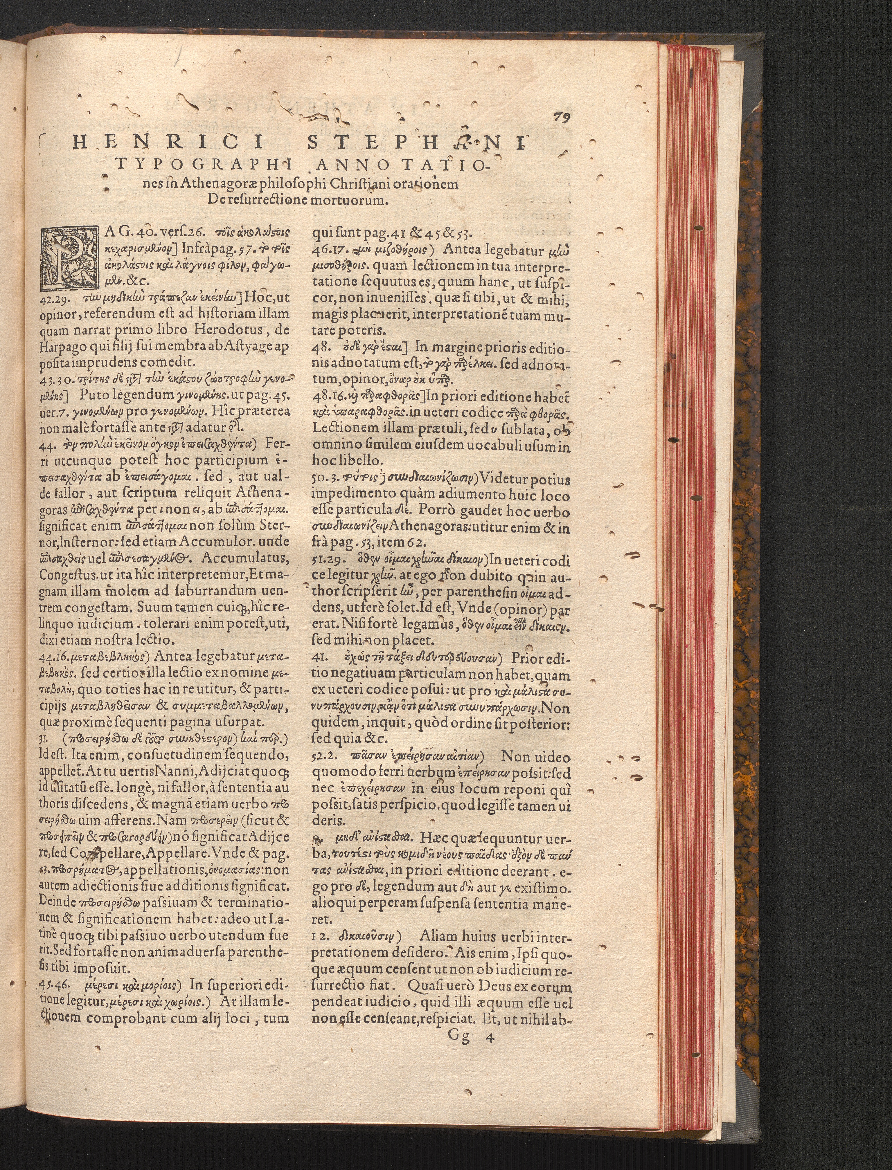 Henrici Stephani Typographi Annotationes Athenagoræ philosophi Christiani orationem[...]