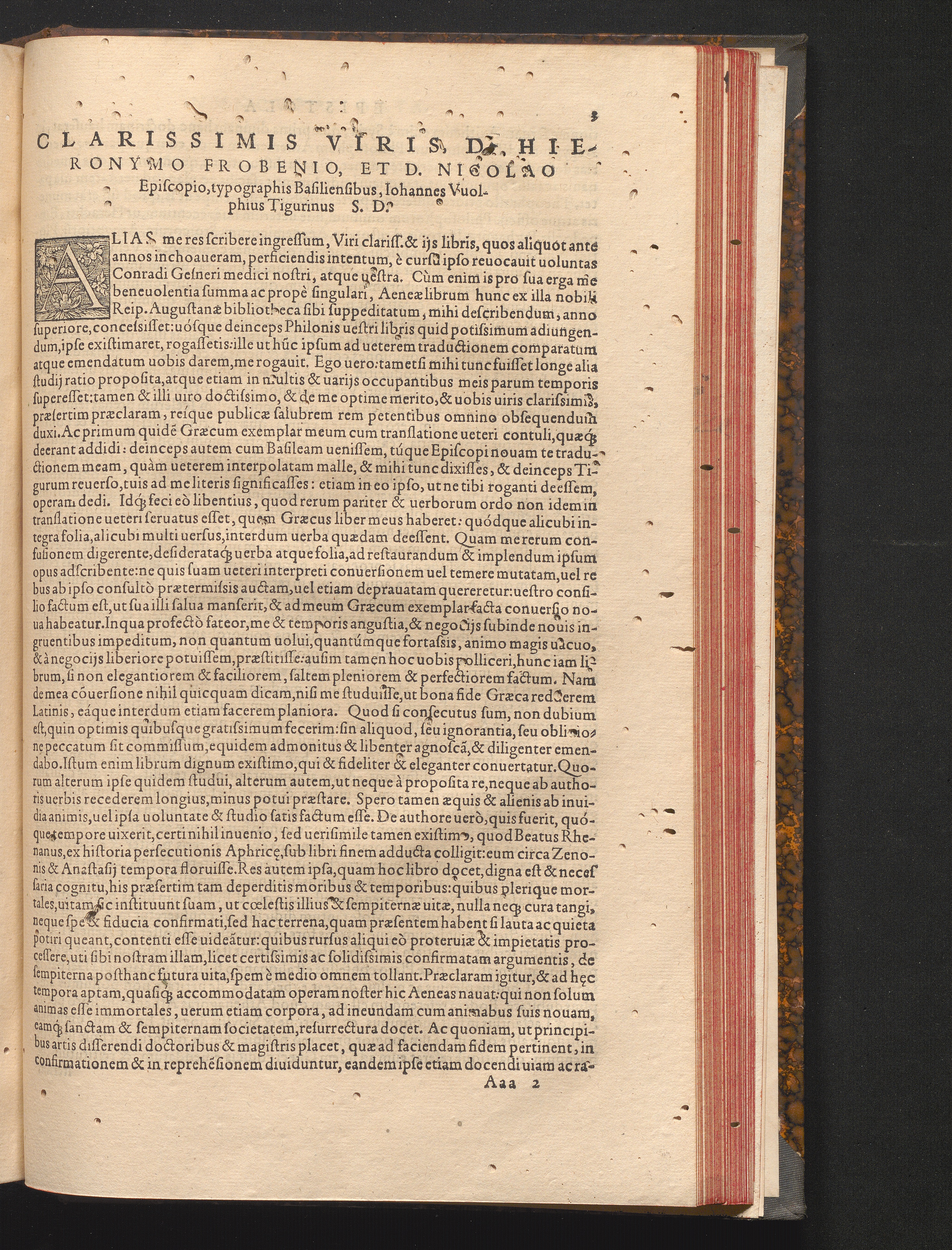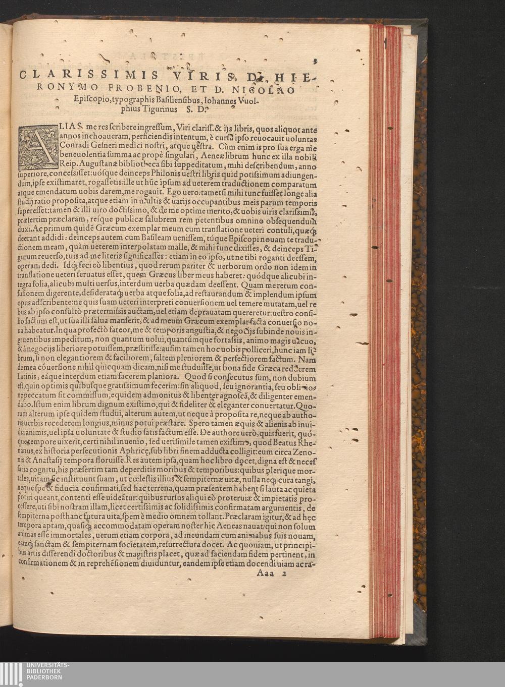 Clarissimis Viris, D. Hieronymo Frobenio, Et D. Nicolao Episcopio, typographis Basiliensibus,[...]