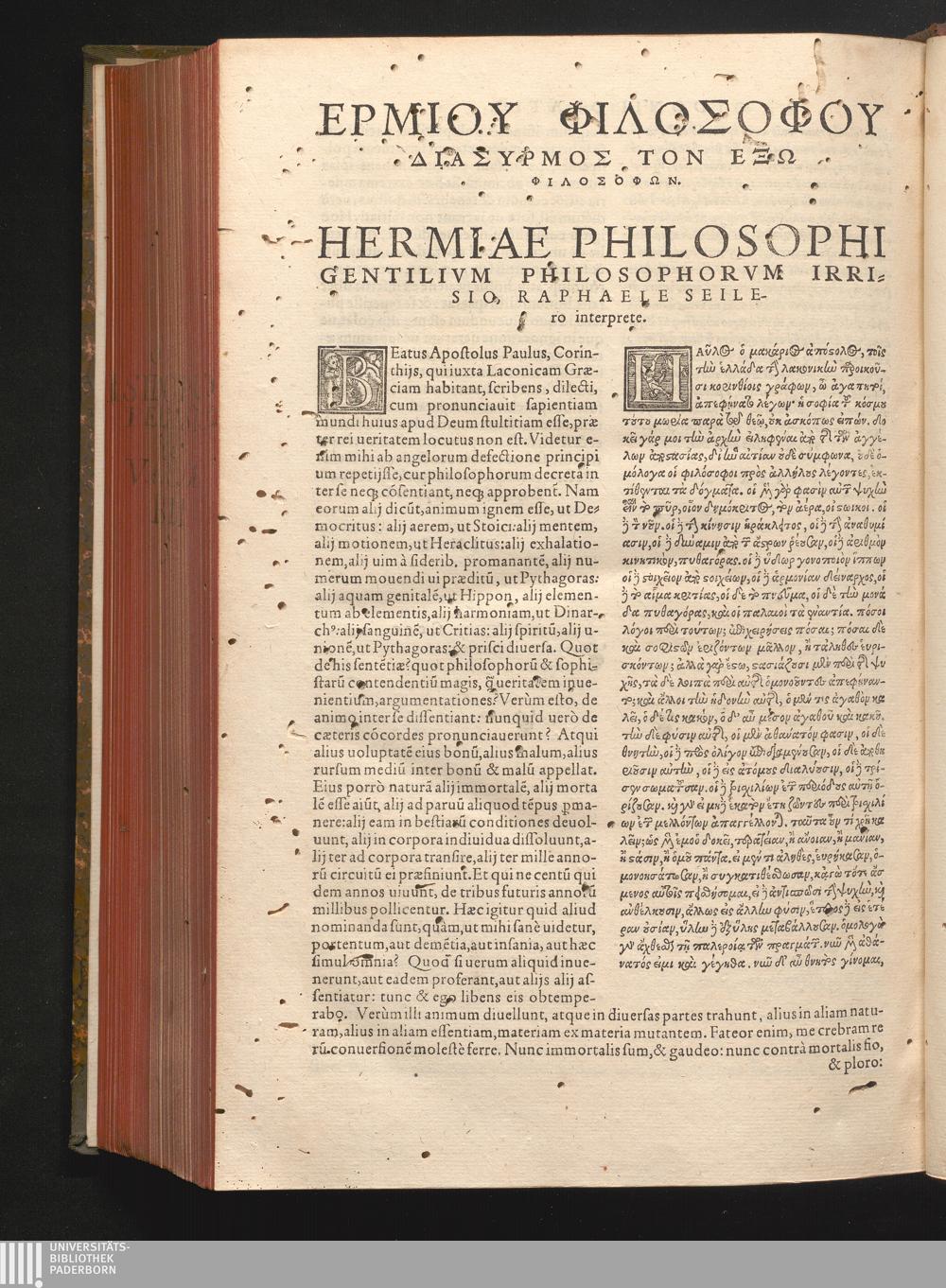 Hermiae Philosophi Gentilivm Philosophorvm Irrisio, Raphaele Seilero interprete.