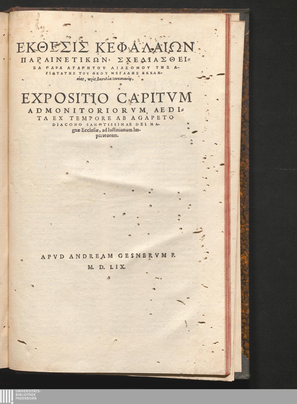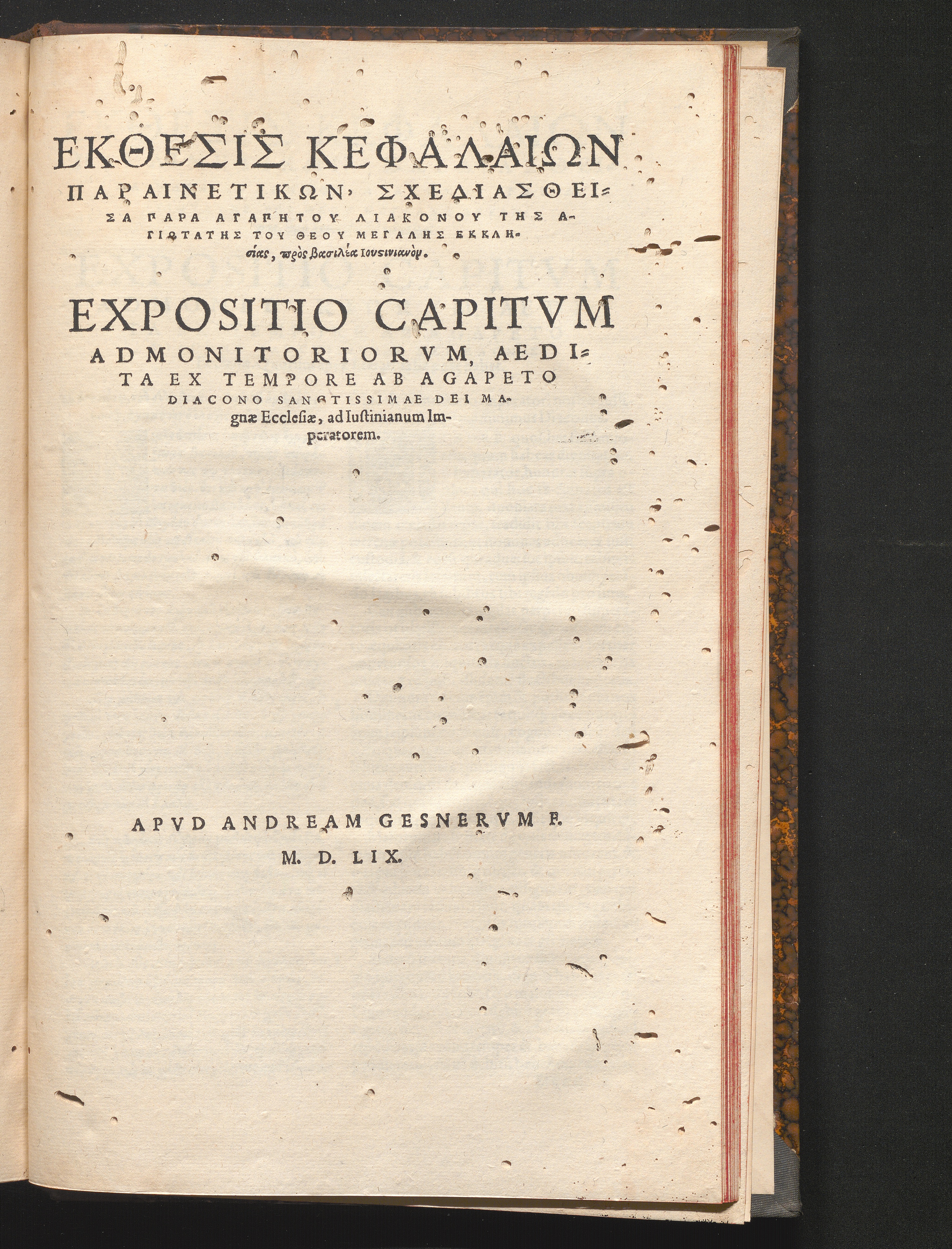 Expositio Capitvm Admonitorivm, Aedita Ex Tempore Ab Agapeto Diacono Sanctissimae[...]