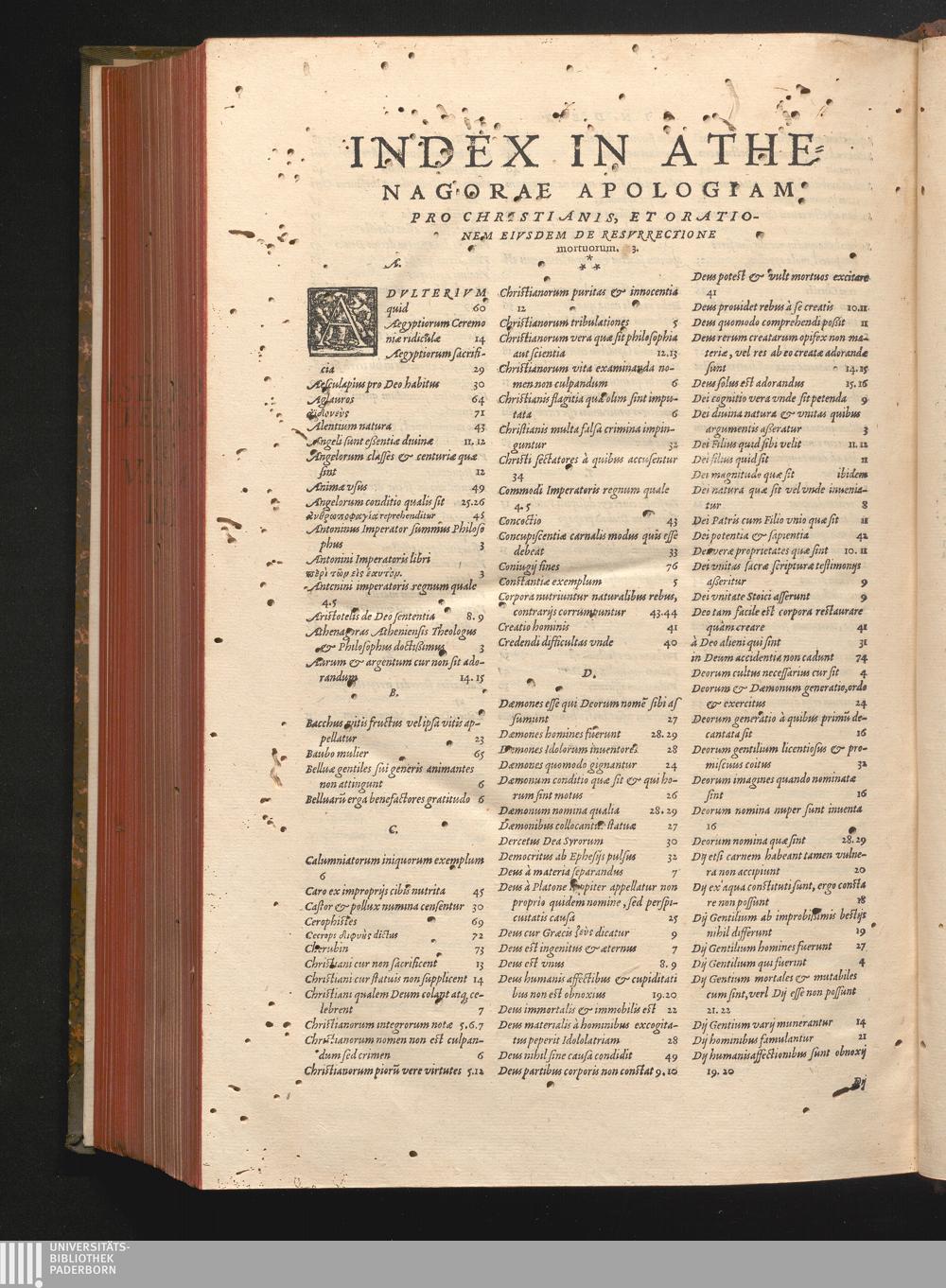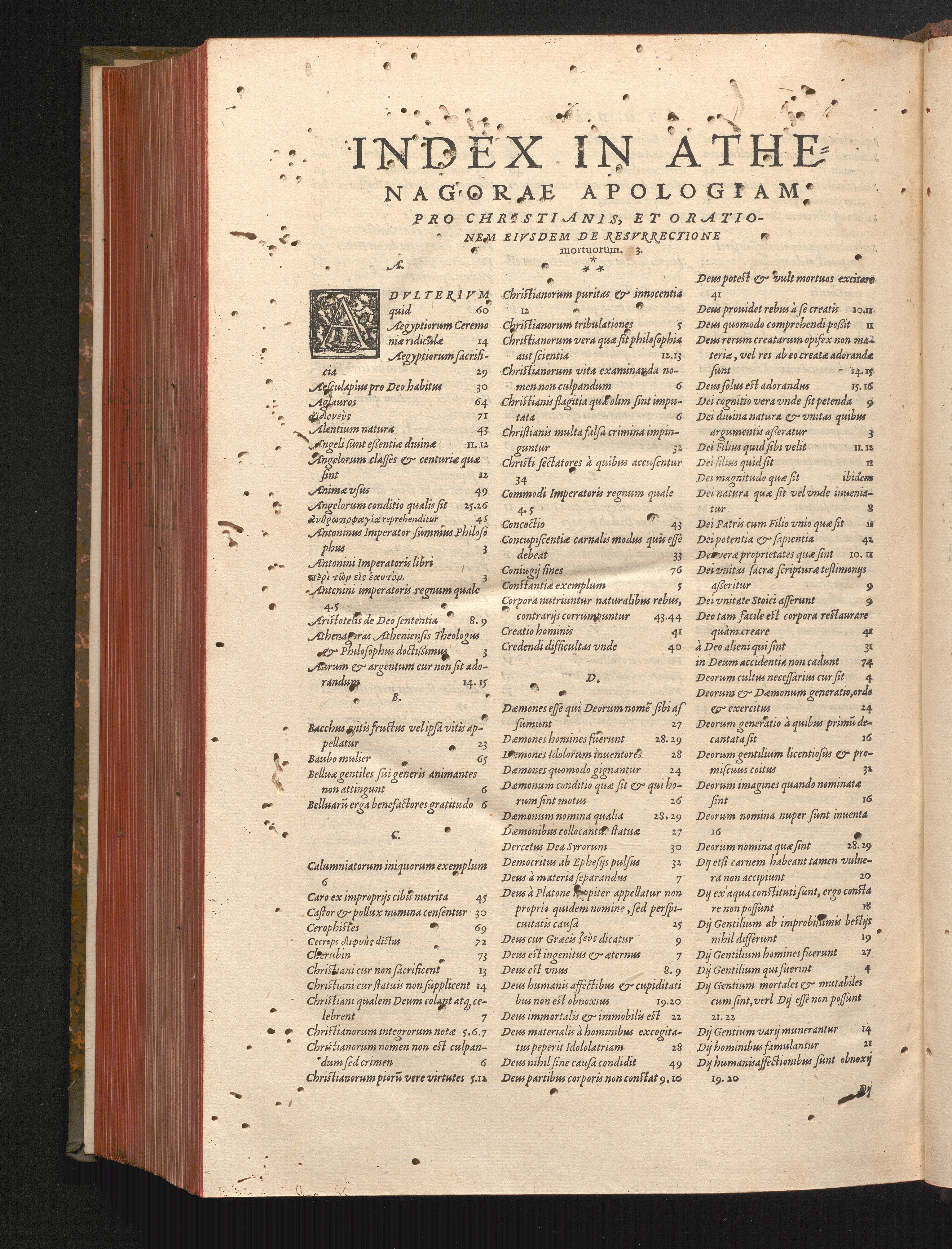 Index In Athenagorae Apologiam Pro Christianis, Et Orationem Eivsdem De Resvrrectione[...]