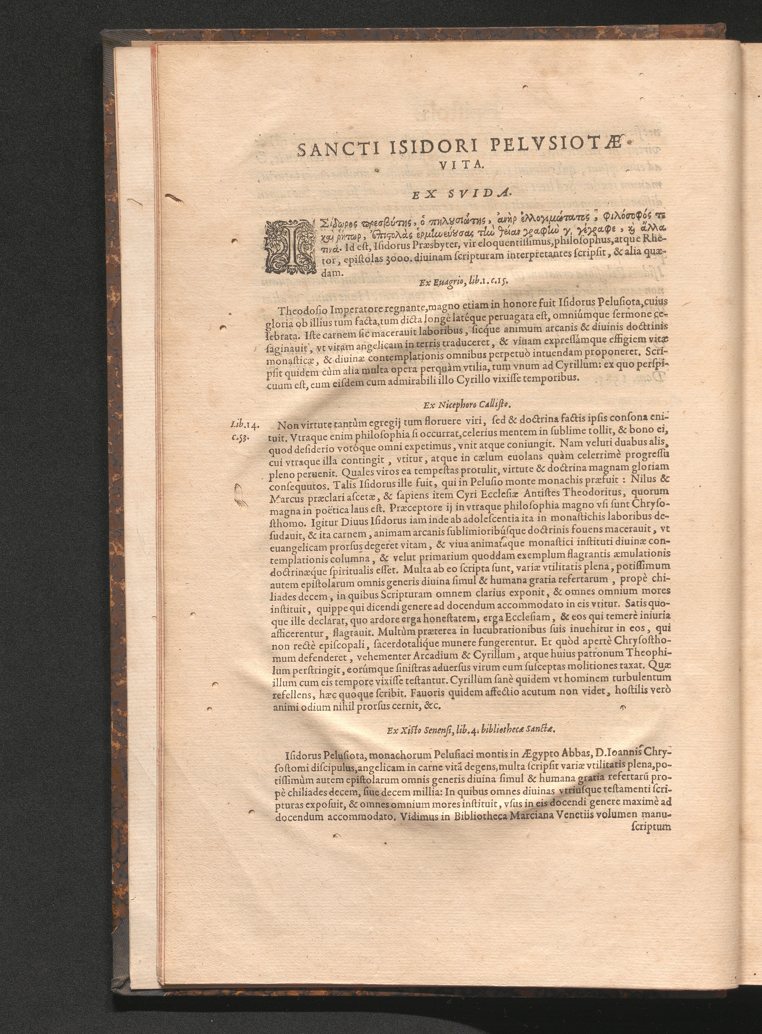 Epistolai tu hagiu Isidōru tu Pēlusiōtu / Quibus è regione accessit latina Clariss. viri Iacobi Billii Prunęi, S. Michaëlis in Eremo quondam Cœnobiarchæ, interpretatio