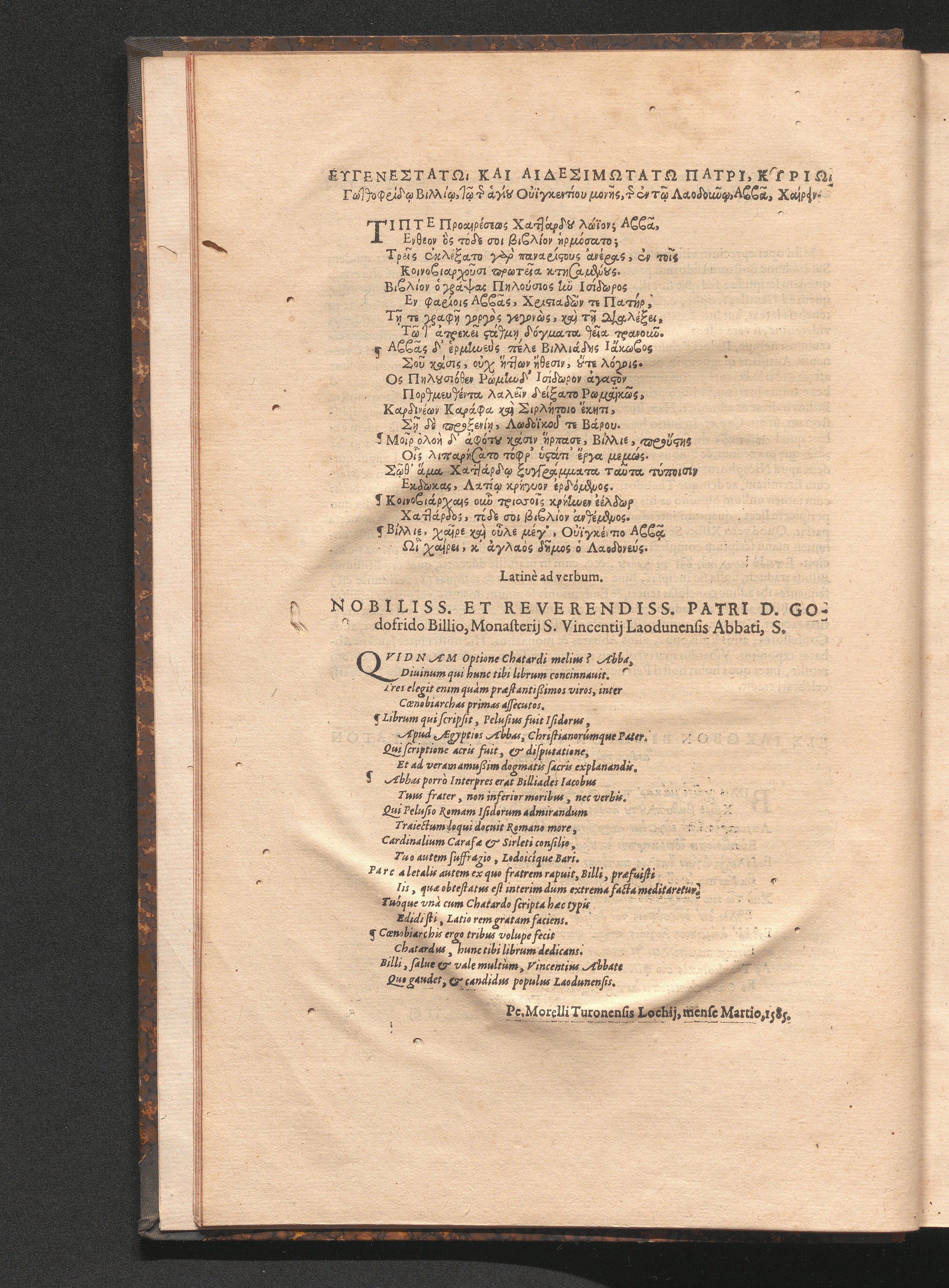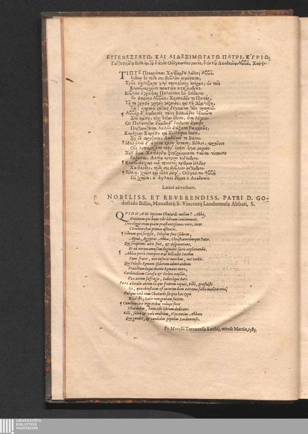 Nobiliss. Et Reverendiss. Patri D. Godofrido Billio, Monasterij S. Vincentij Laodunensis[...]