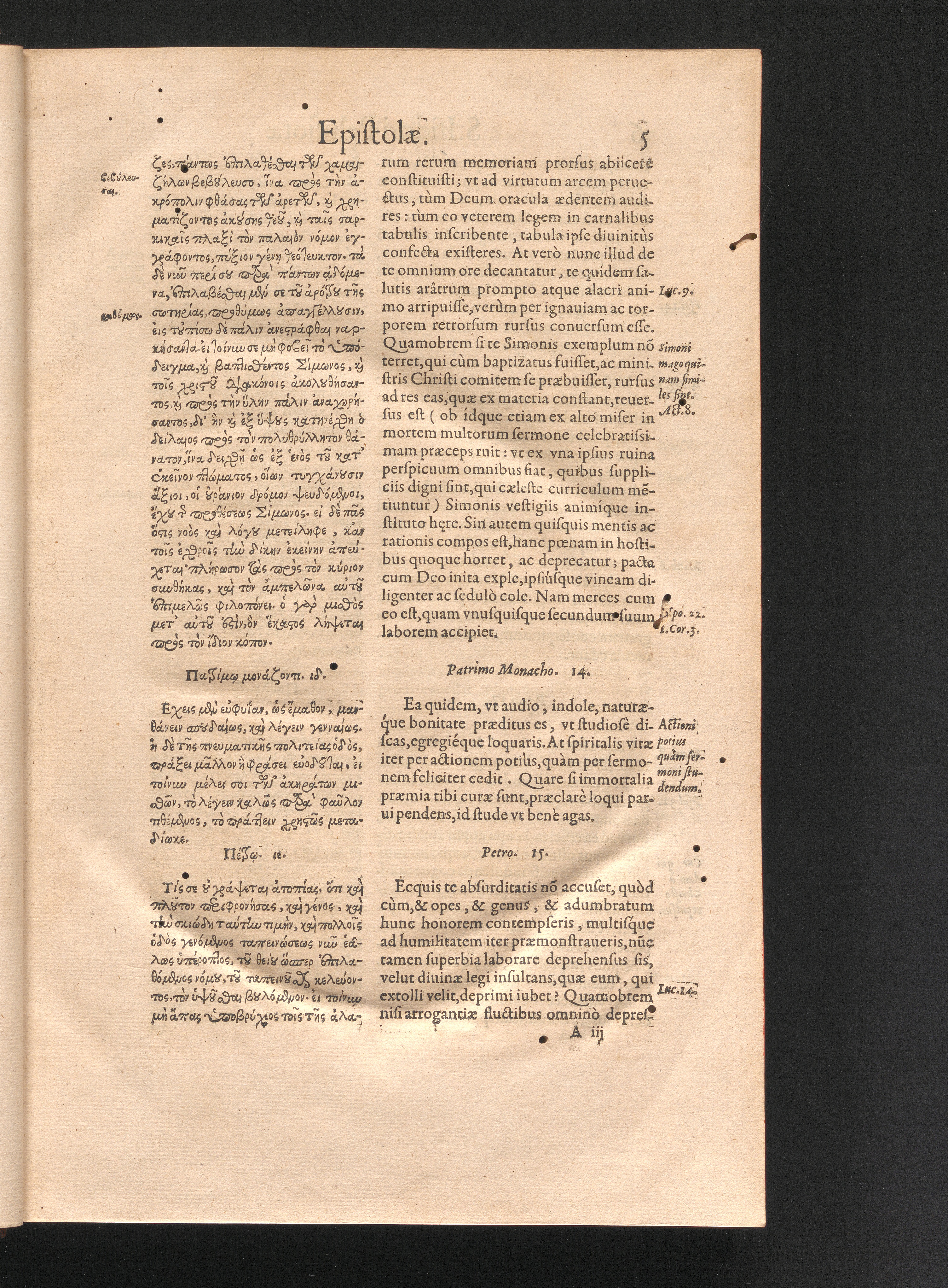 Epistolai tu hagiu Isidōru tu Pēlusiōtu / Quibus è regione accessit latina Clariss. viri Iacobi Billii Prunęi, S. Michaëlis in Eremo quondam Cœnobiarchæ, interpretatio