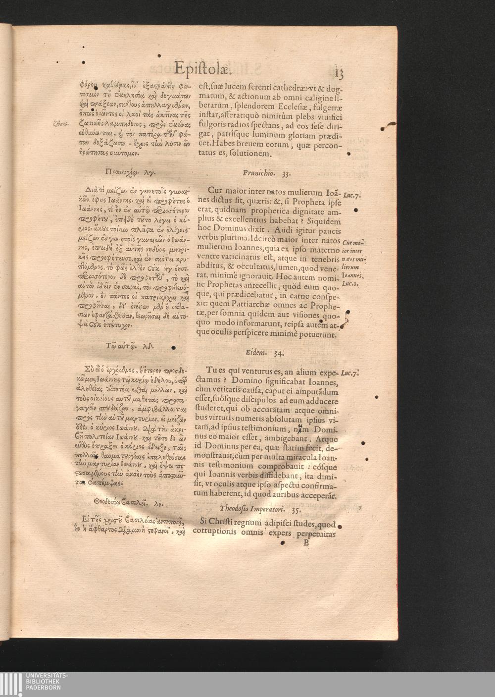 Epistolai tu hagiu Isidōru tu Pēlusiōtu / Quibus è regione accessit latina Clariss. viri Iacobi Billii Prunęi, S. Michaëlis in Eremo quondam Cœnobiarchæ, interpretatio