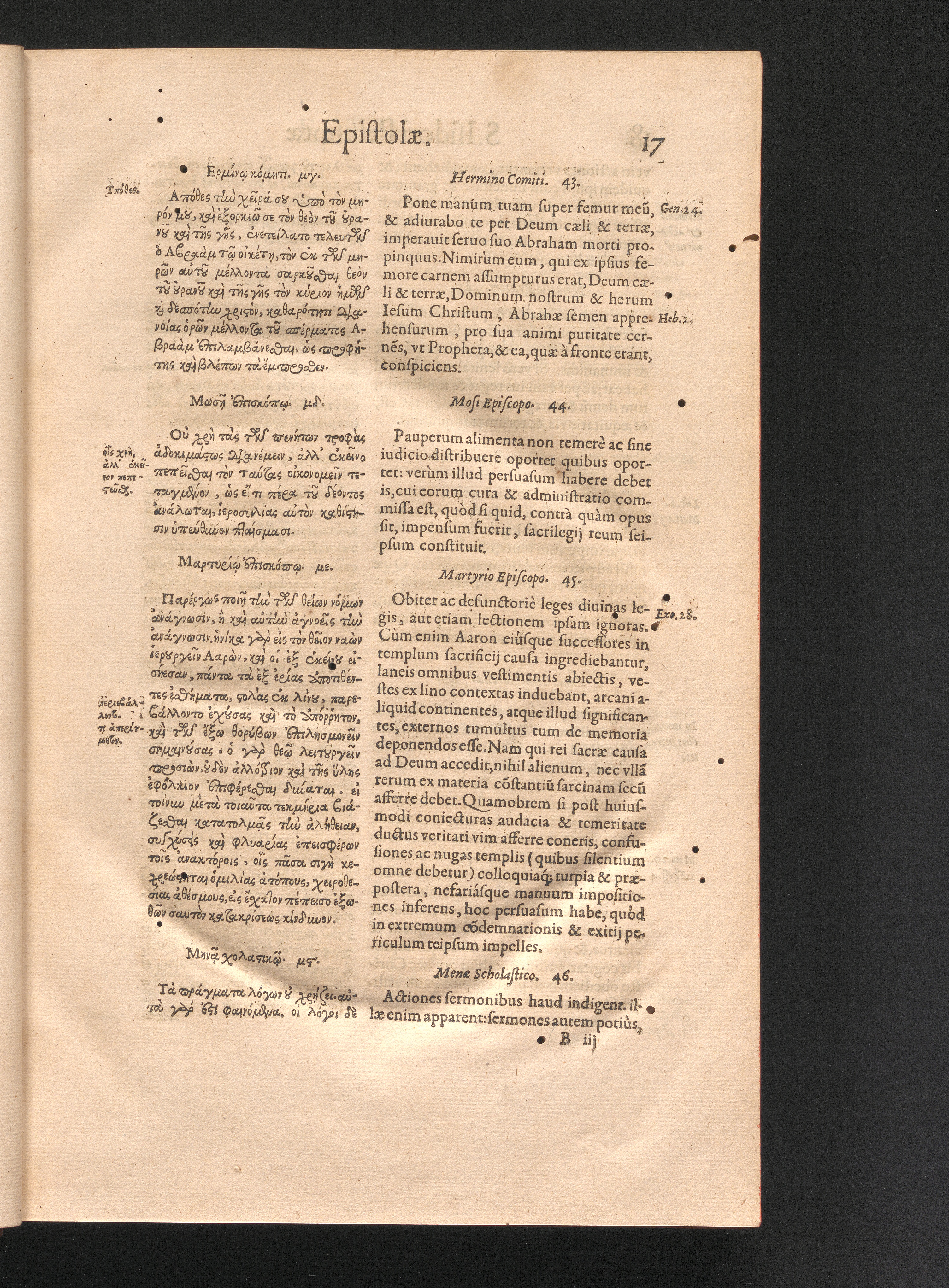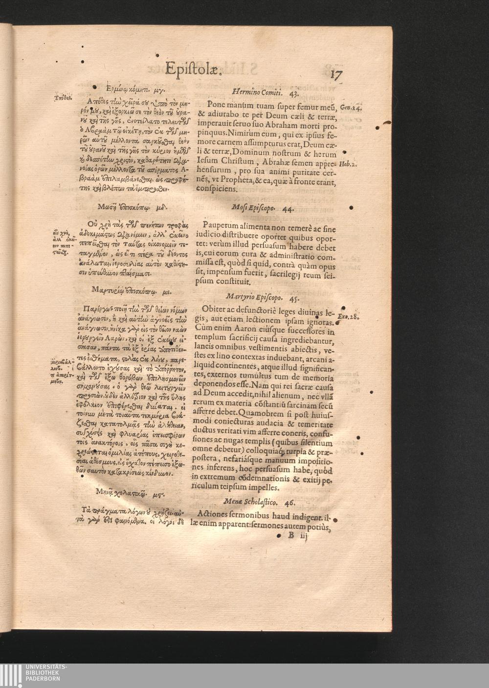 Epistolai tu hagiu Isidōru tu Pēlusiōtu / Quibus è regione accessit latina Clariss. viri Iacobi Billii Prunęi, S. Michaëlis in Eremo quondam Cœnobiarchæ, interpretatio