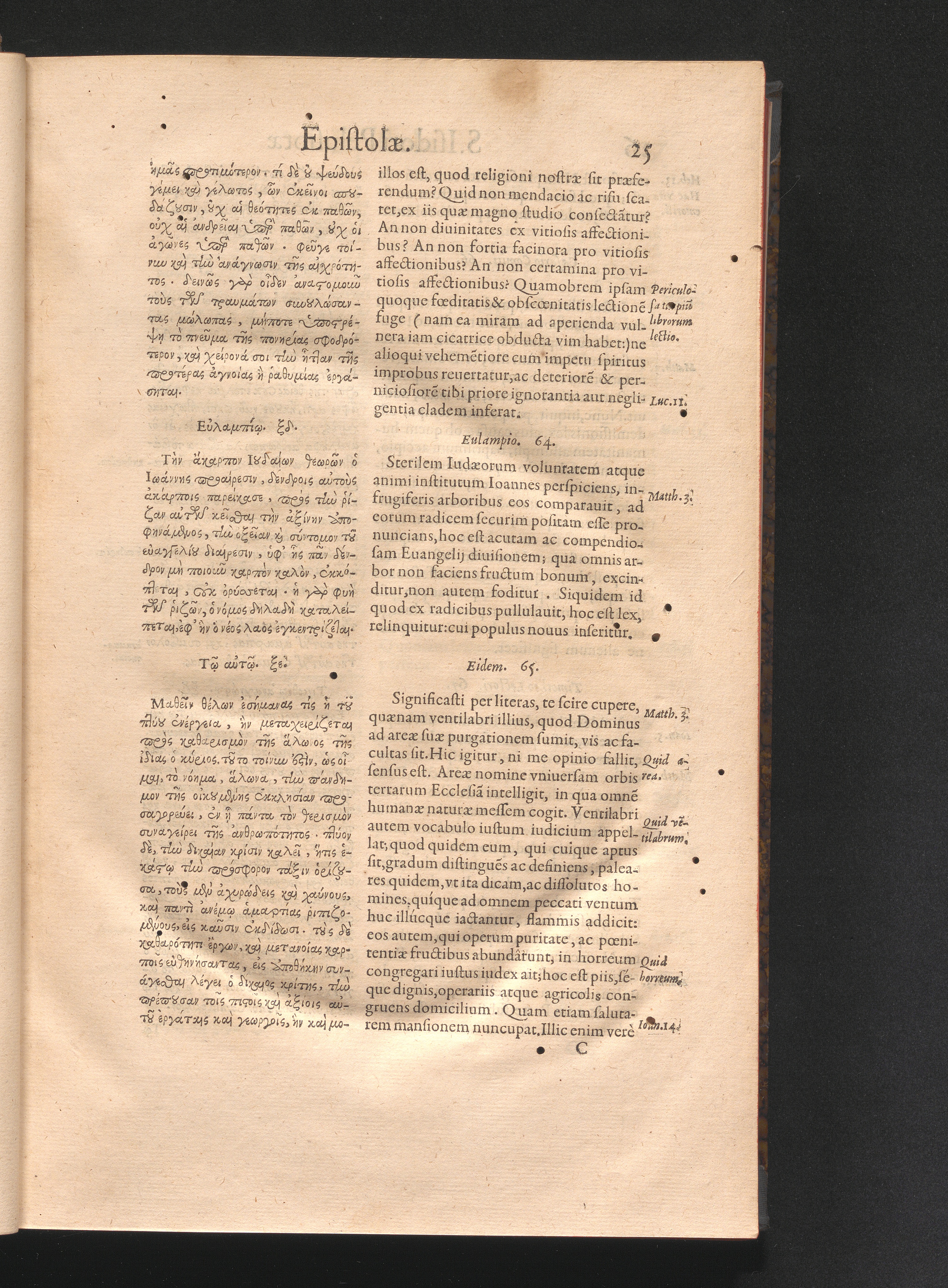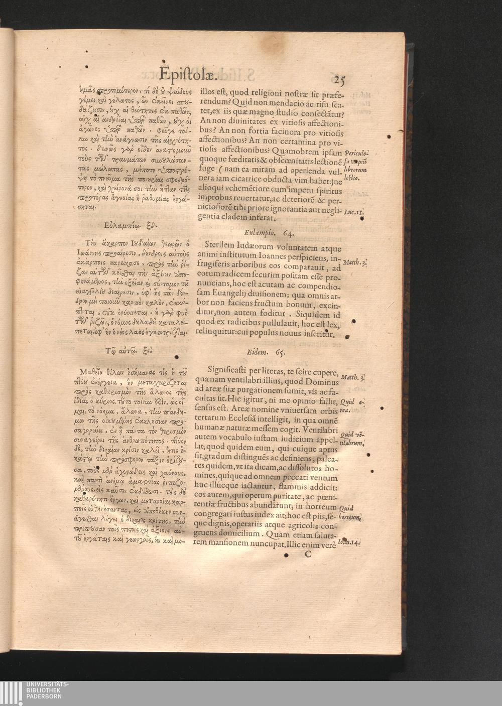 Epistolai tu hagiu Isidōru tu Pēlusiōtu / Quibus è regione accessit latina Clariss. viri Iacobi Billii Prunęi, S. Michaëlis in Eremo quondam Cœnobiarchæ, interpretatio