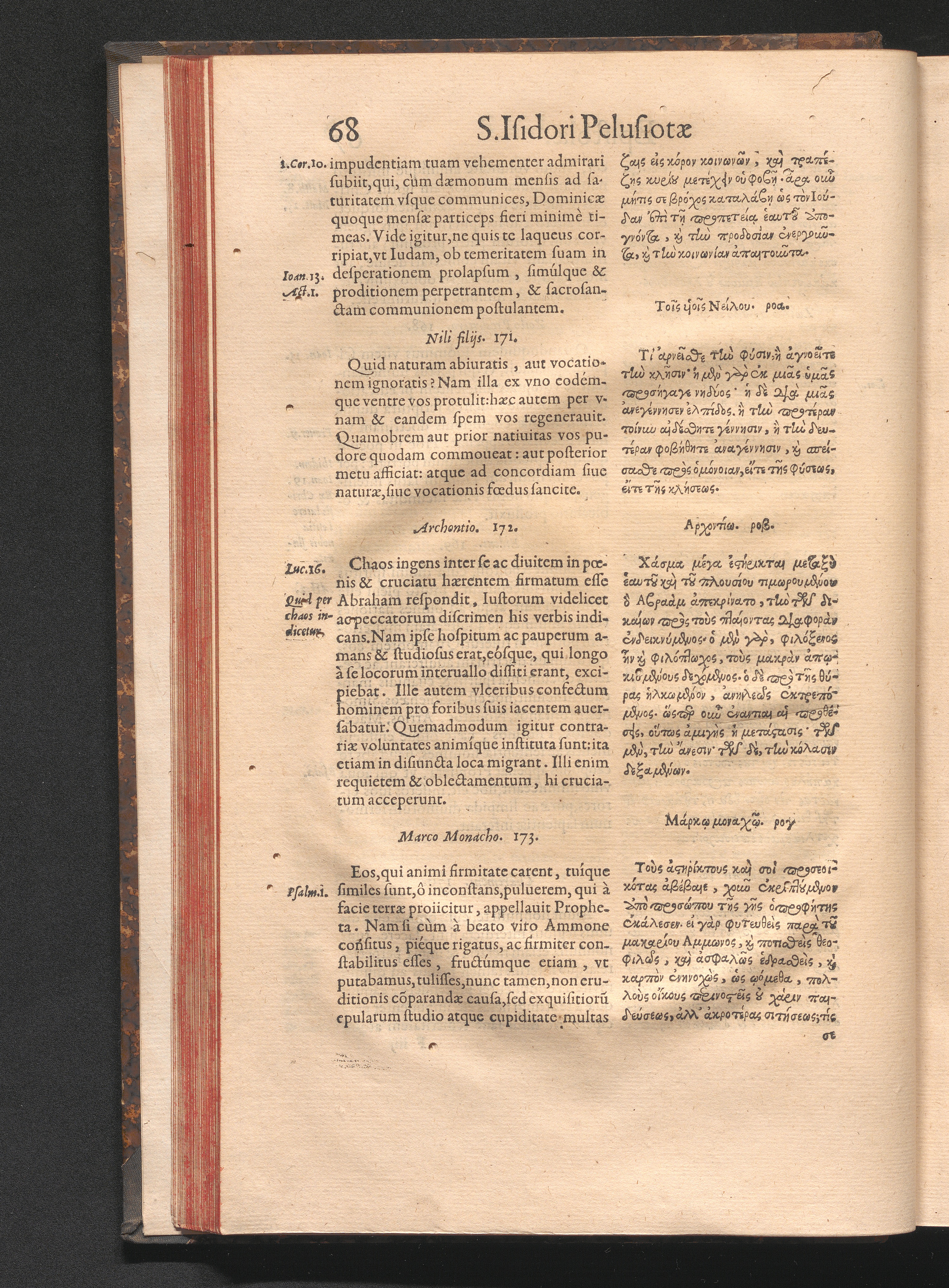 Epistolai tu hagiu Isidōru tu Pēlusiōtu / Quibus è regione accessit latina Clariss. viri Iacobi Billii Prunęi, S. Michaëlis in Eremo quondam Cœnobiarchæ, interpretatio