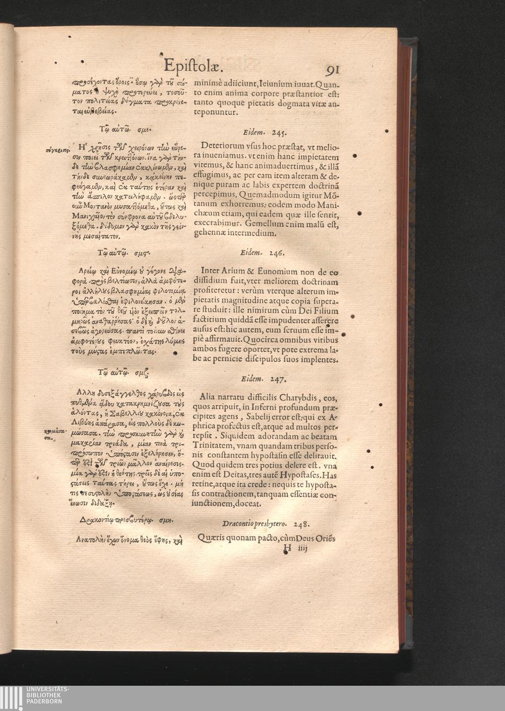 Epistolai tu hagiu Isidōru tu Pēlusiōtu / Quibus è regione accessit latina Clariss. viri Iacobi Billii Prunęi, S. Michaëlis in Eremo quondam Cœnobiarchæ, interpretatio