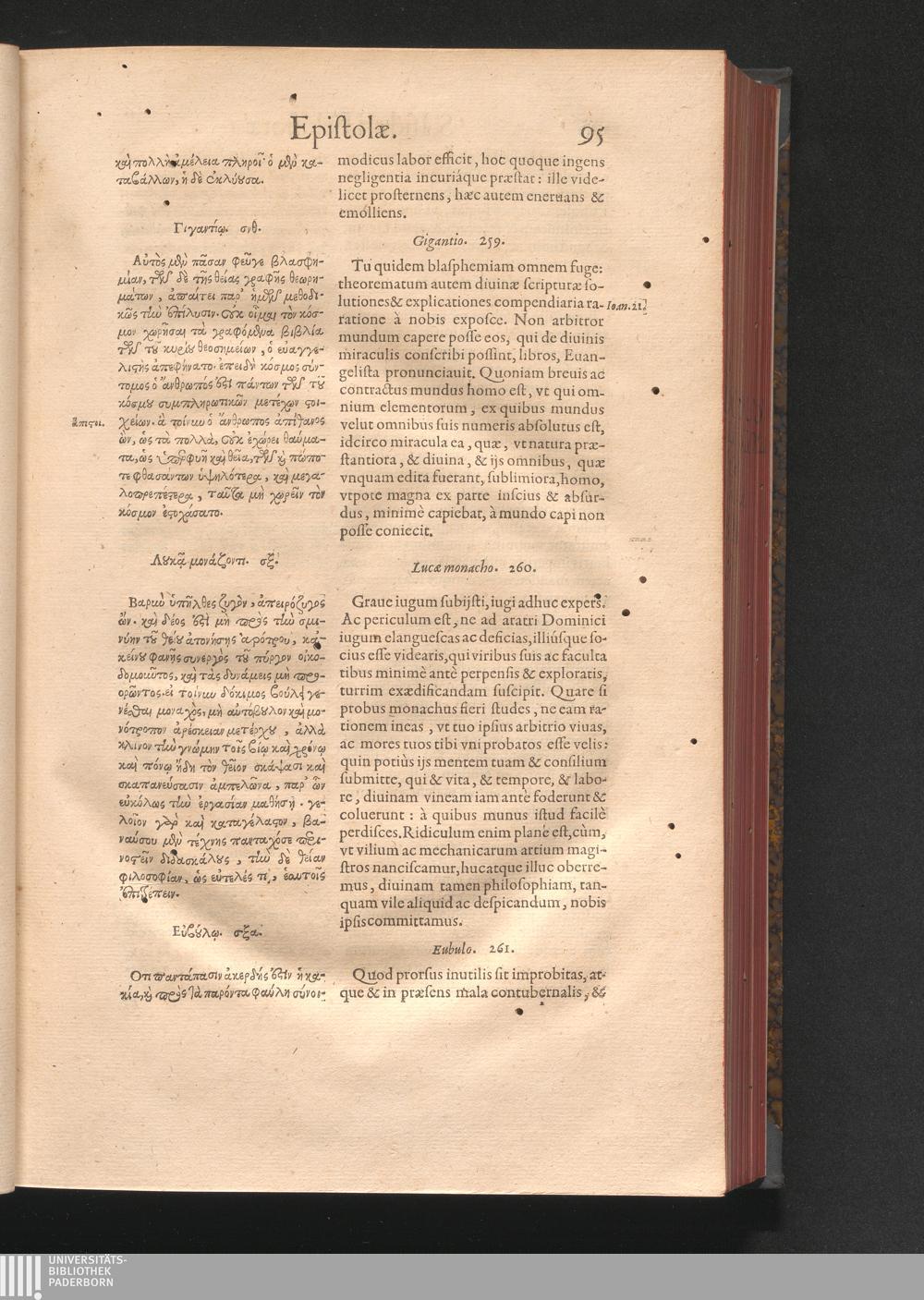 Epistolai tu hagiu Isidōru tu Pēlusiōtu / Quibus è regione accessit latina Clariss. viri Iacobi Billii Prunęi, S. Michaëlis in Eremo quondam Cœnobiarchæ, interpretatio