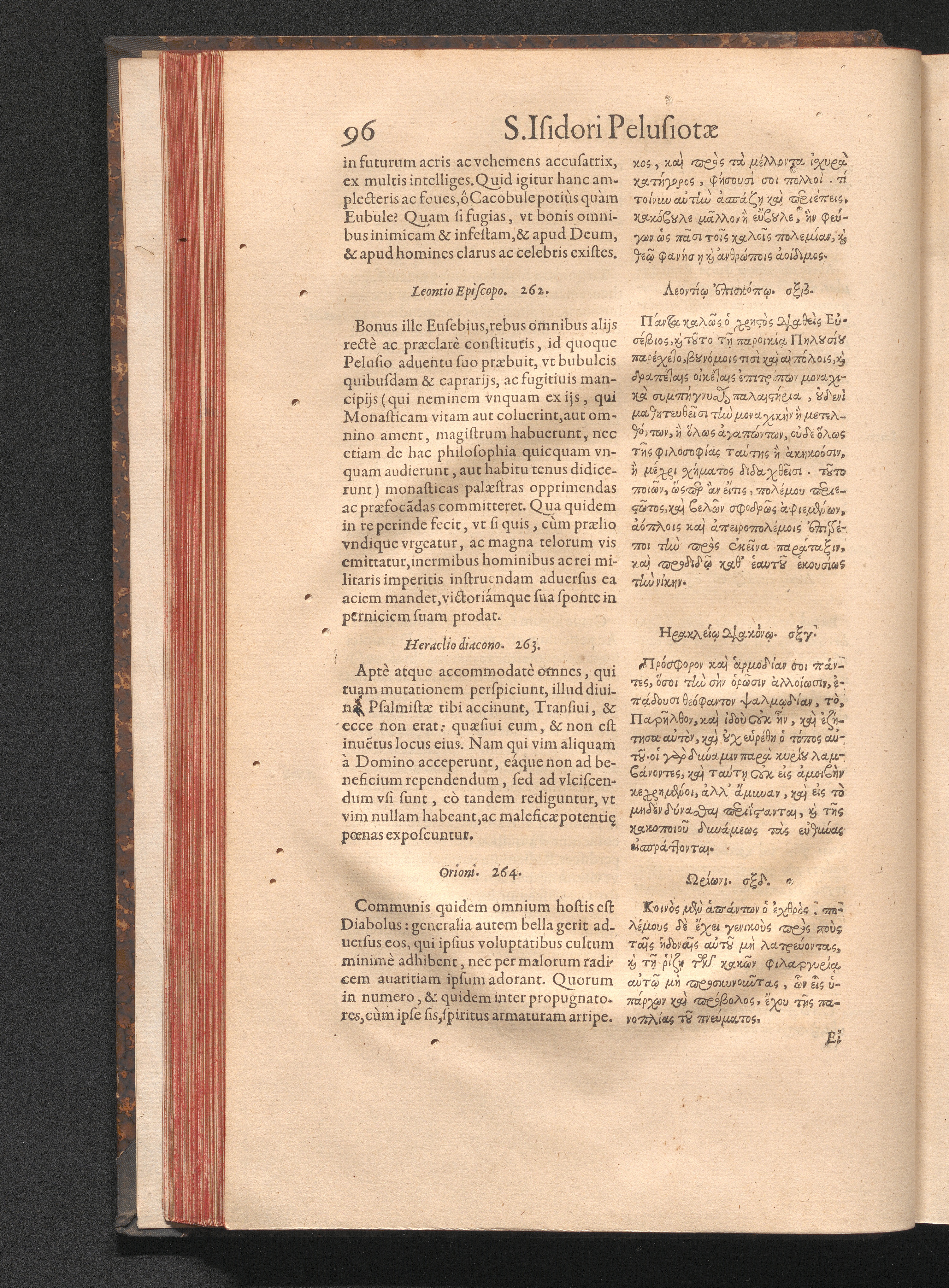 Epistolai tu hagiu Isidōru tu Pēlusiōtu / Quibus è regione accessit latina Clariss. viri Iacobi Billii Prunęi, S. Michaëlis in Eremo quondam Cœnobiarchæ, interpretatio