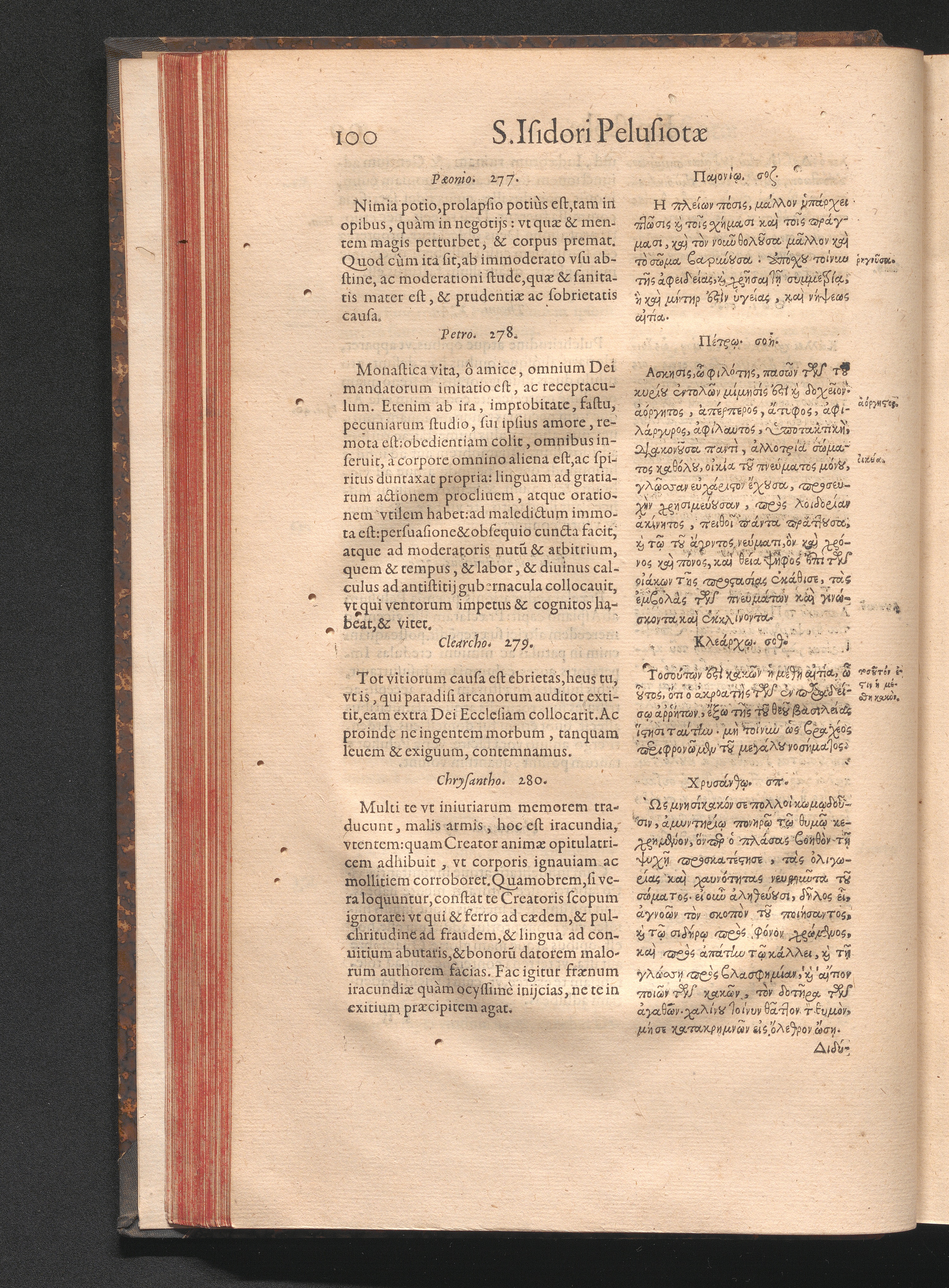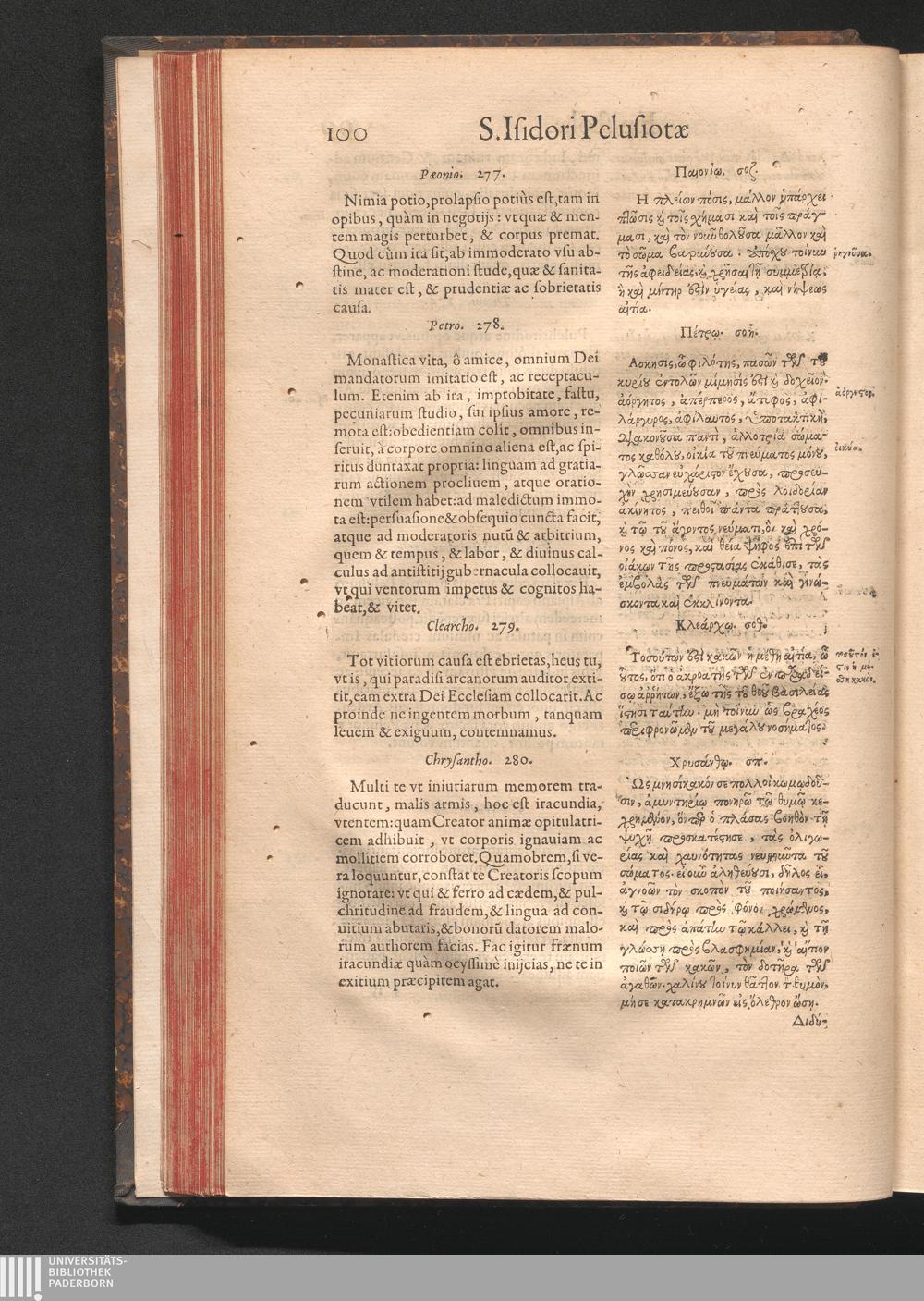 Epistolai tu hagiu Isidōru tu Pēlusiōtu / Quibus è regione accessit latina Clariss. viri Iacobi Billii Prunęi, S. Michaëlis in Eremo quondam Cœnobiarchæ, interpretatio