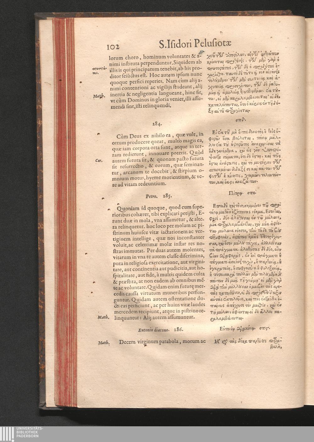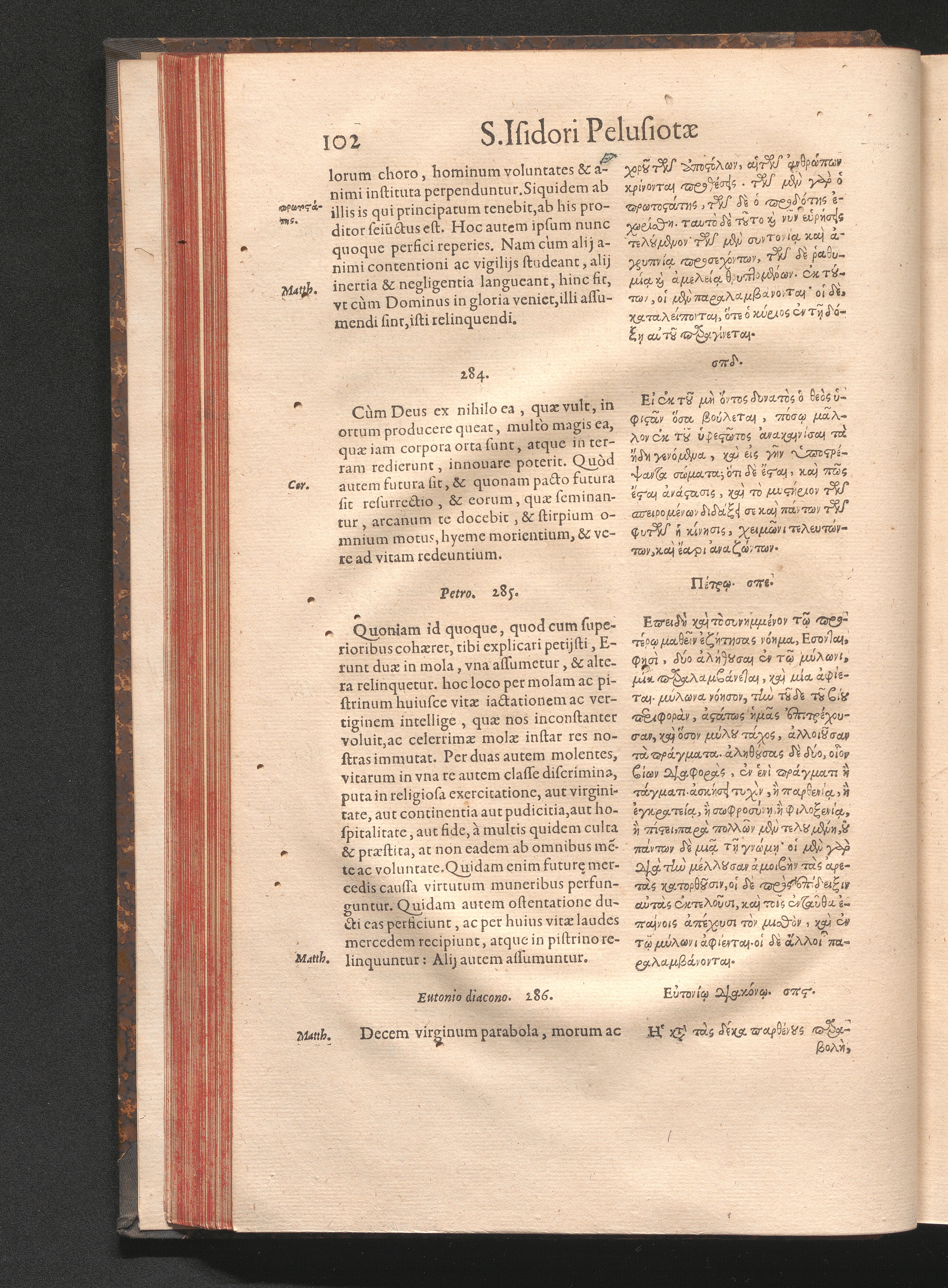 Epistolai tu hagiu Isidōru tu Pēlusiōtu / Quibus è regione accessit latina Clariss. viri Iacobi Billii Prunęi, S. Michaëlis in Eremo quondam Cœnobiarchæ, interpretatio