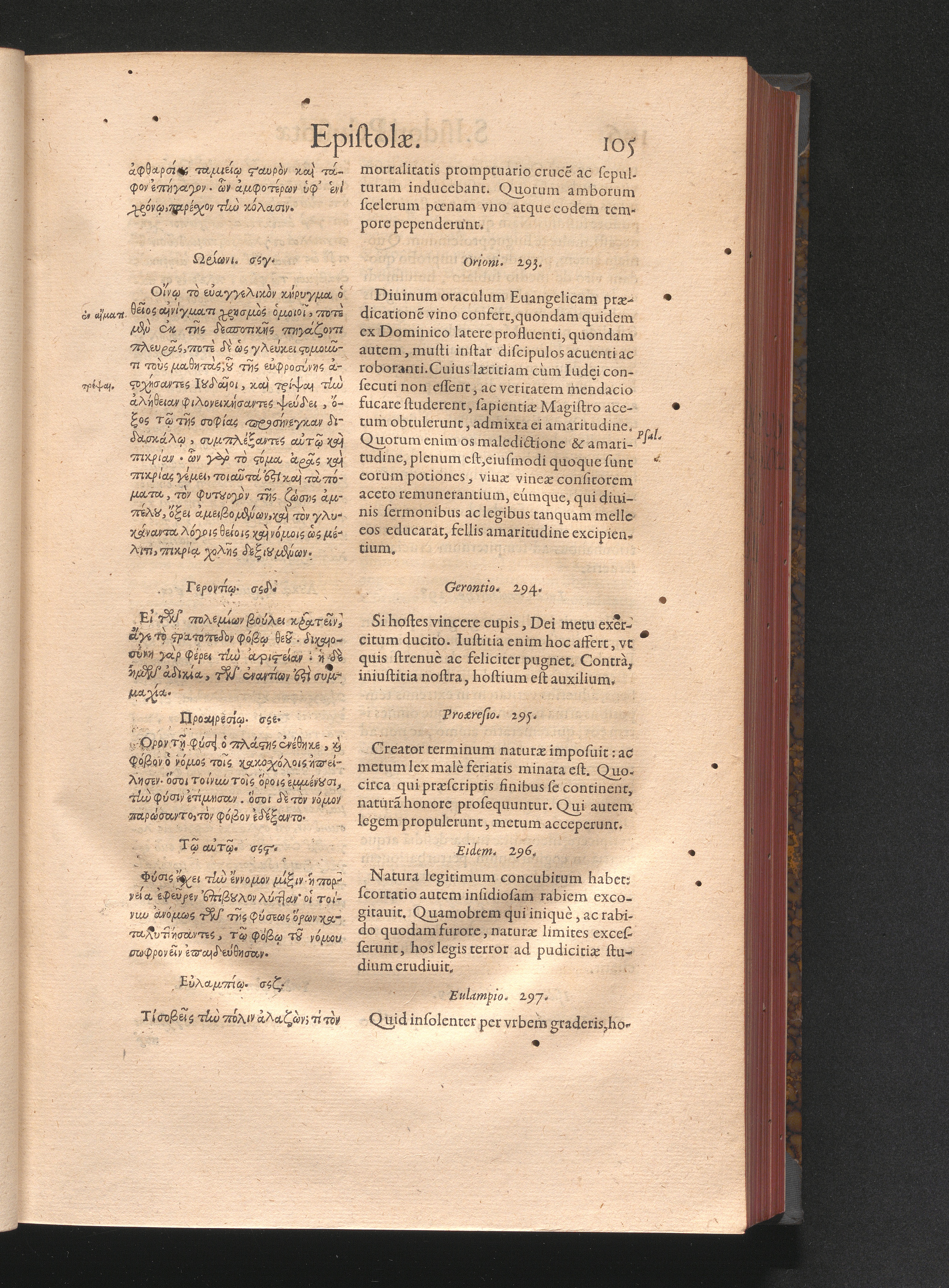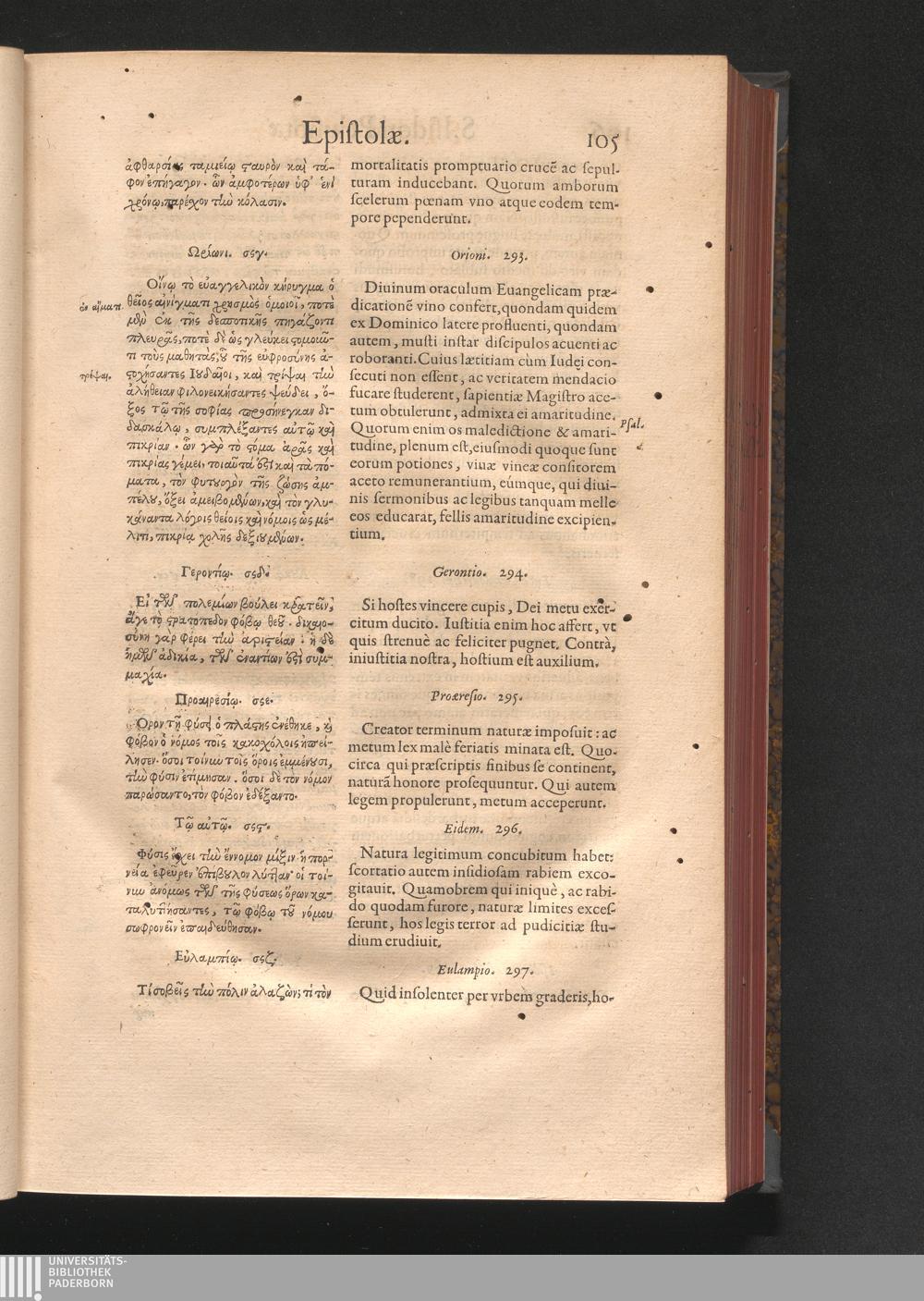 Epistolai tu hagiu Isidōru tu Pēlusiōtu / Quibus è regione accessit latina Clariss. viri Iacobi Billii Prunęi, S. Michaëlis in Eremo quondam Cœnobiarchæ, interpretatio