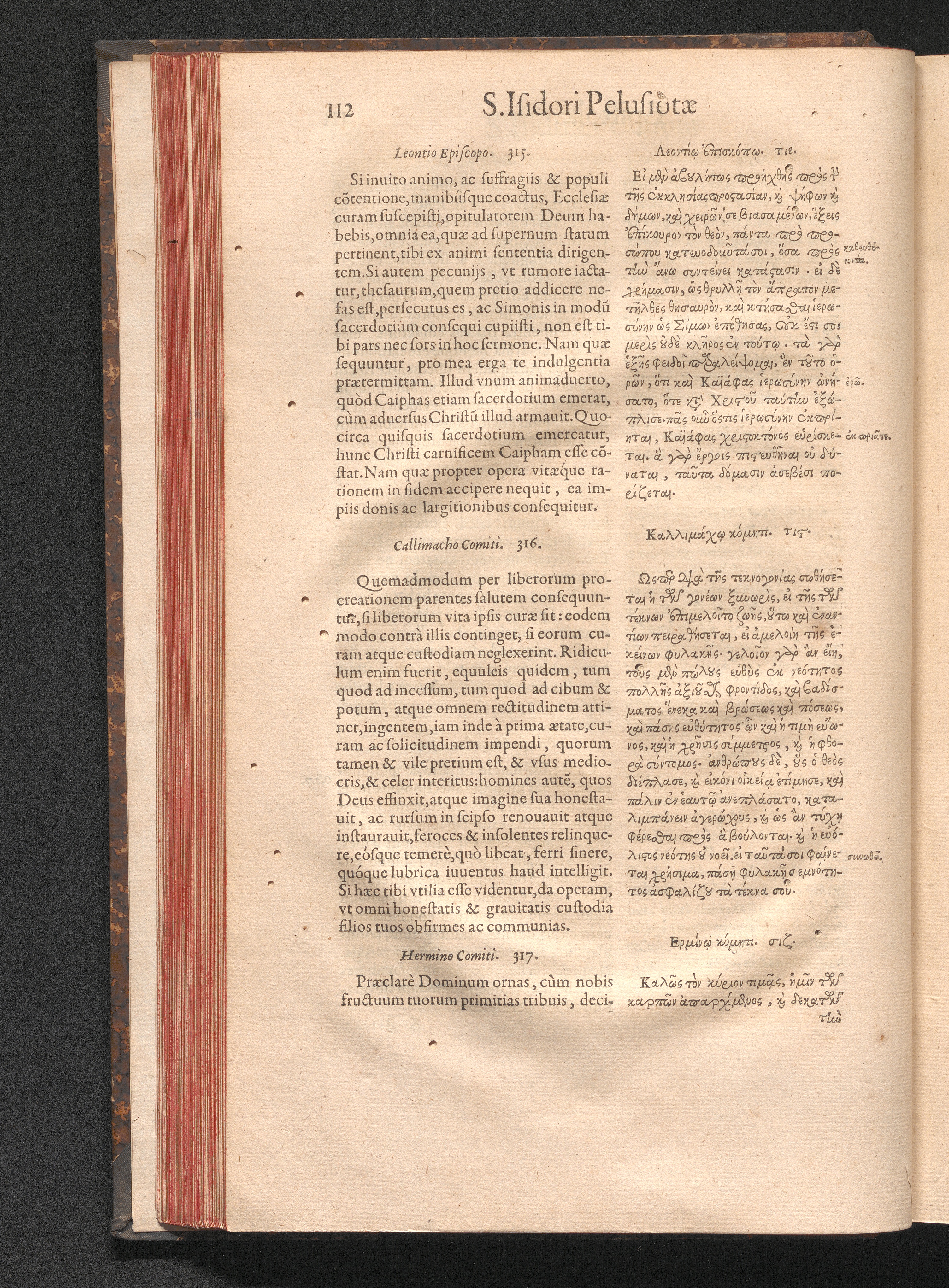 Epistolai tu hagiu Isidōru tu Pēlusiōtu / Quibus è regione accessit latina Clariss. viri Iacobi Billii Prunęi, S. Michaëlis in Eremo quondam Cœnobiarchæ, interpretatio