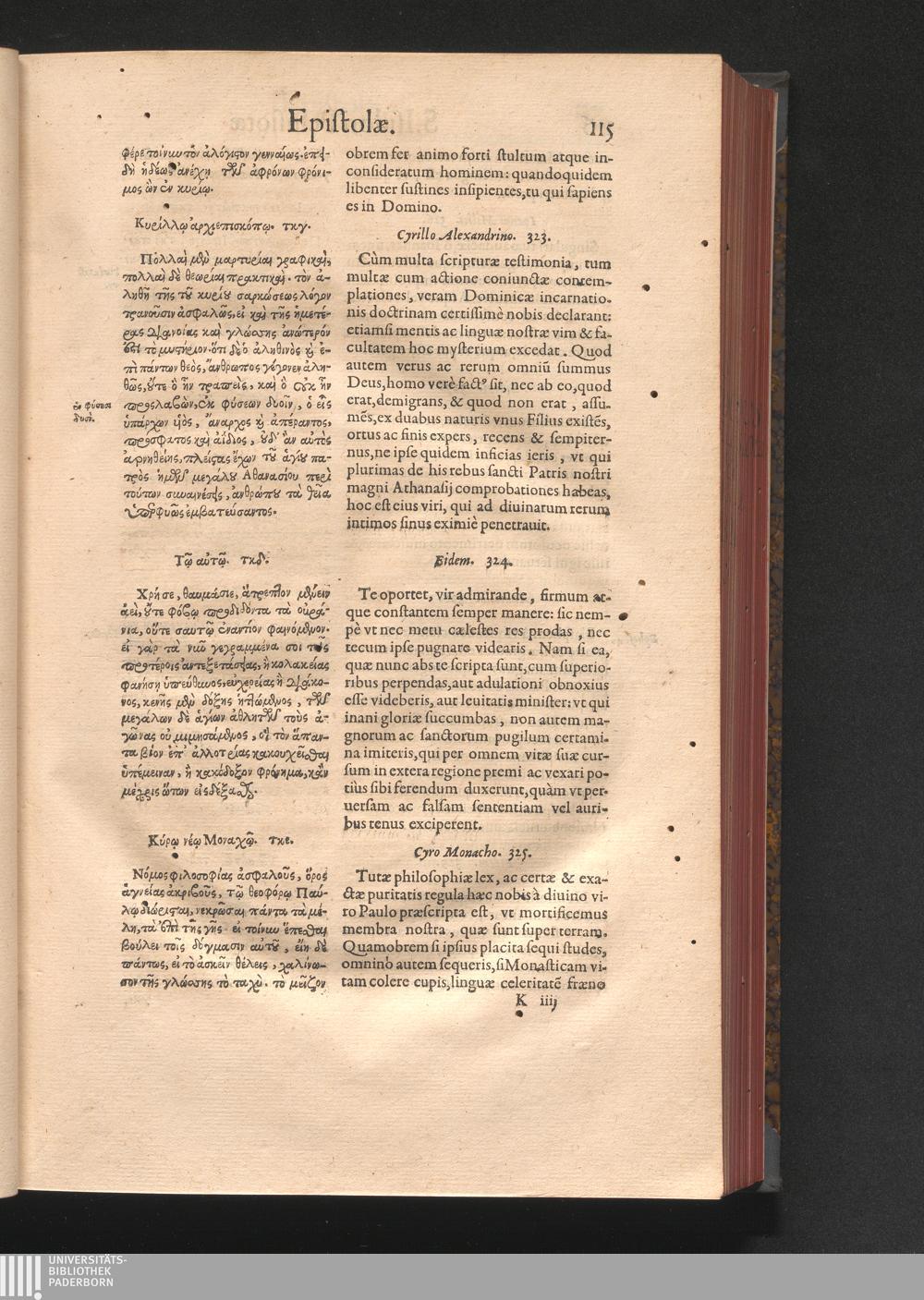 Epistolai tu hagiu Isidōru tu Pēlusiōtu / Quibus è regione accessit latina Clariss. viri Iacobi Billii Prunęi, S. Michaëlis in Eremo quondam Cœnobiarchæ, interpretatio