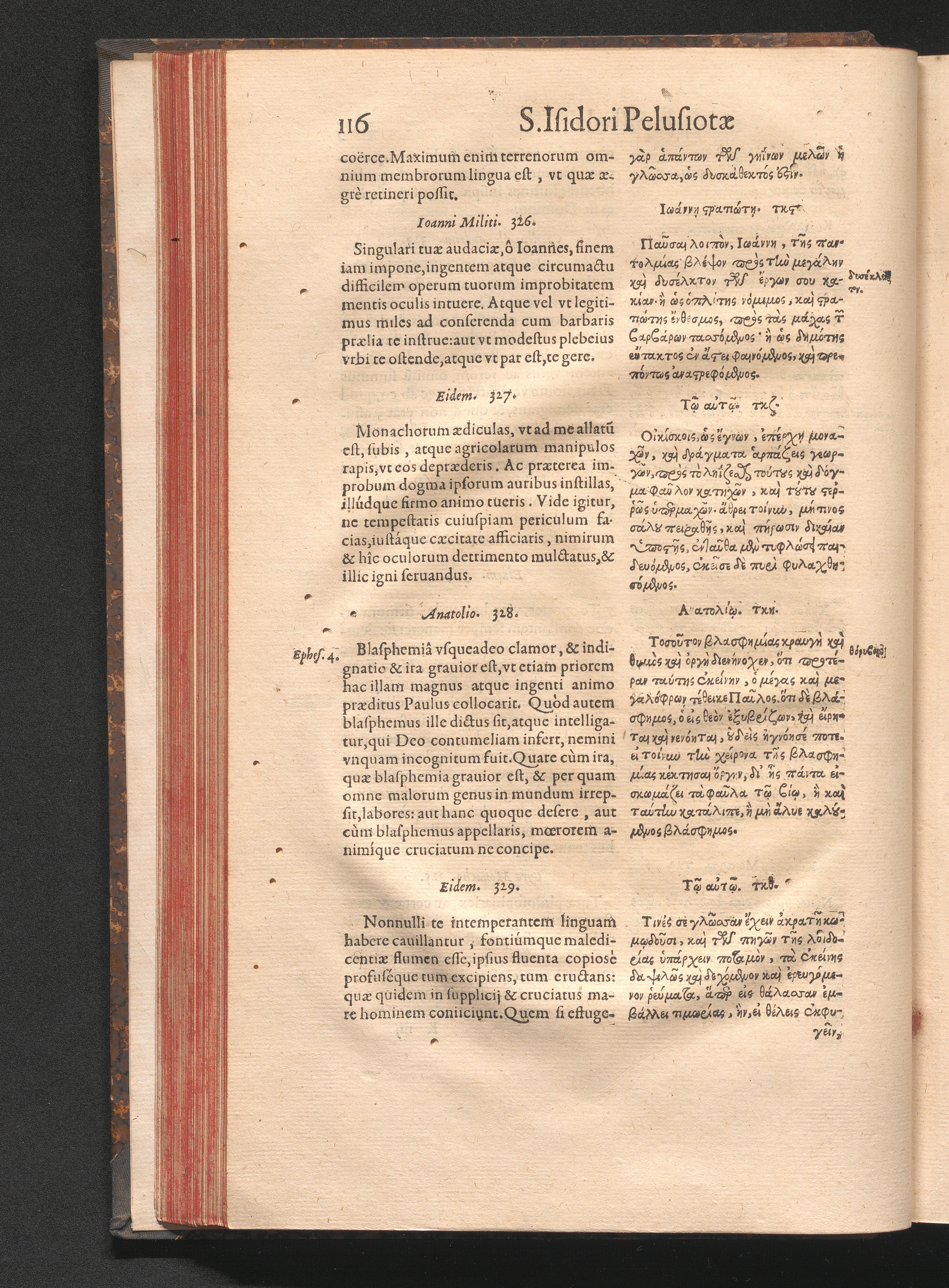 Epistolai tu hagiu Isidōru tu Pēlusiōtu / Quibus è regione accessit latina Clariss. viri Iacobi Billii Prunęi, S. Michaëlis in Eremo quondam Cœnobiarchæ, interpretatio