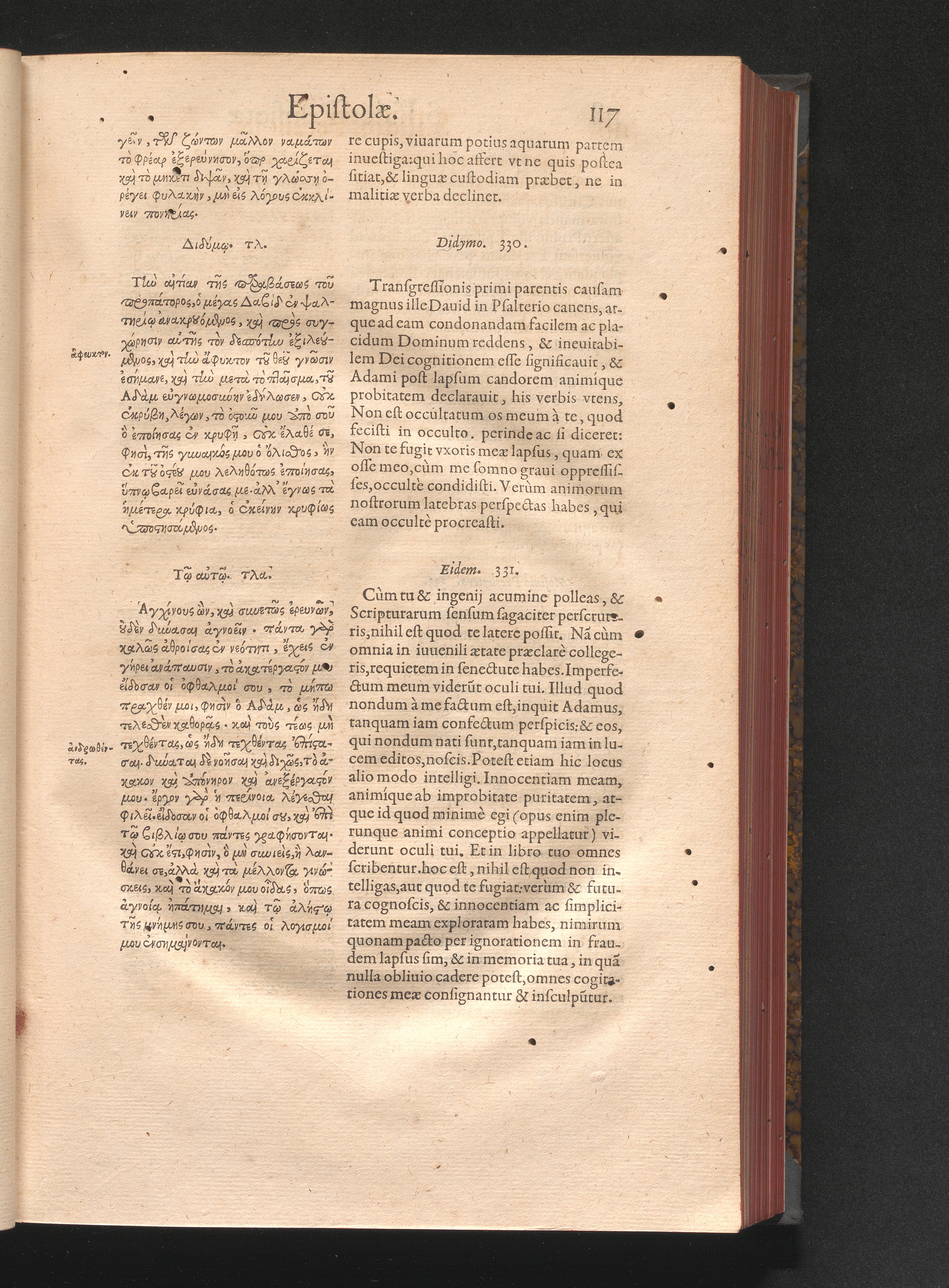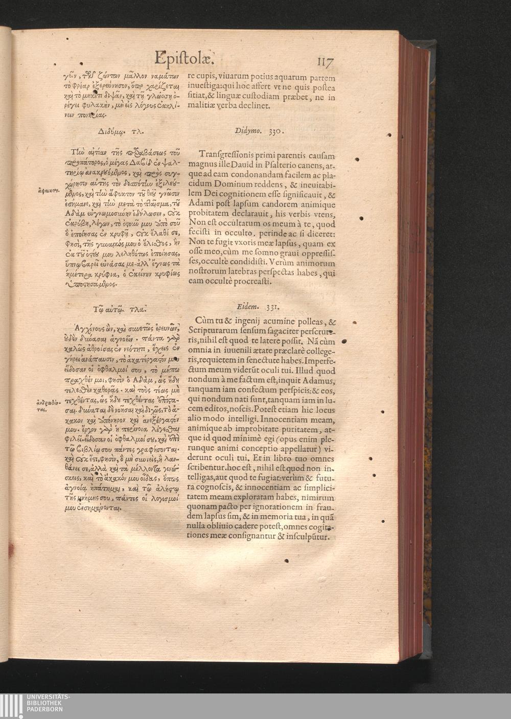 Epistolai tu hagiu Isidōru tu Pēlusiōtu / Quibus è regione accessit latina Clariss. viri Iacobi Billii Prunęi, S. Michaëlis in Eremo quondam Cœnobiarchæ, interpretatio