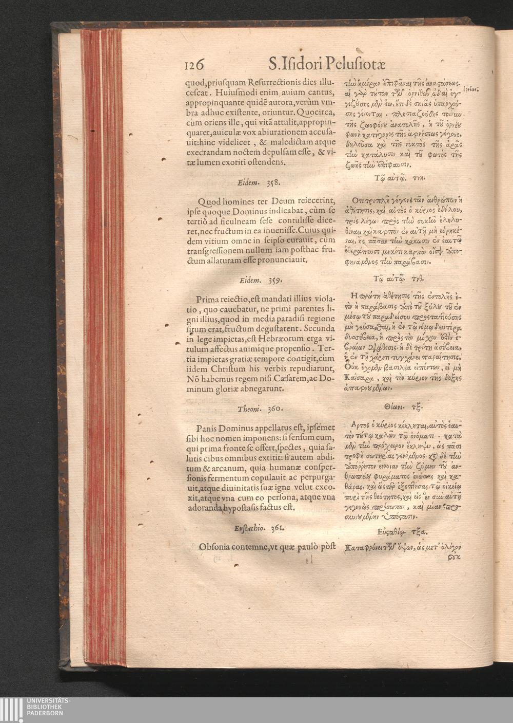 Epistolai tu hagiu Isidōru tu Pēlusiōtu / Quibus è regione accessit latina Clariss. viri Iacobi Billii Prunęi, S. Michaëlis in Eremo quondam Cœnobiarchæ, interpretatio