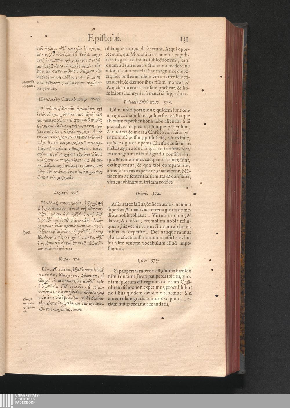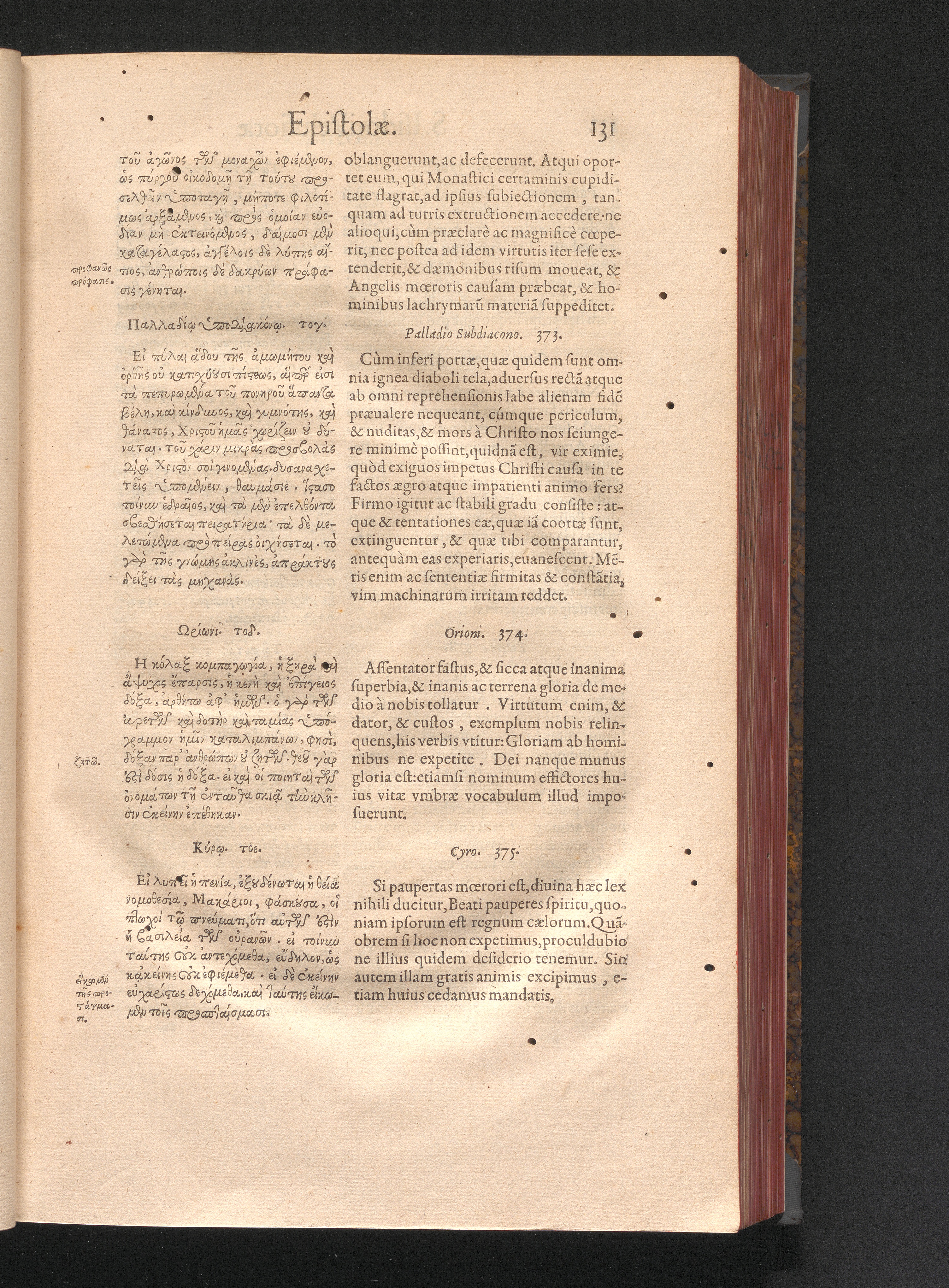 Epistolai tu hagiu Isidōru tu Pēlusiōtu / Quibus è regione accessit latina Clariss. viri Iacobi Billii Prunęi, S. Michaëlis in Eremo quondam Cœnobiarchæ, interpretatio