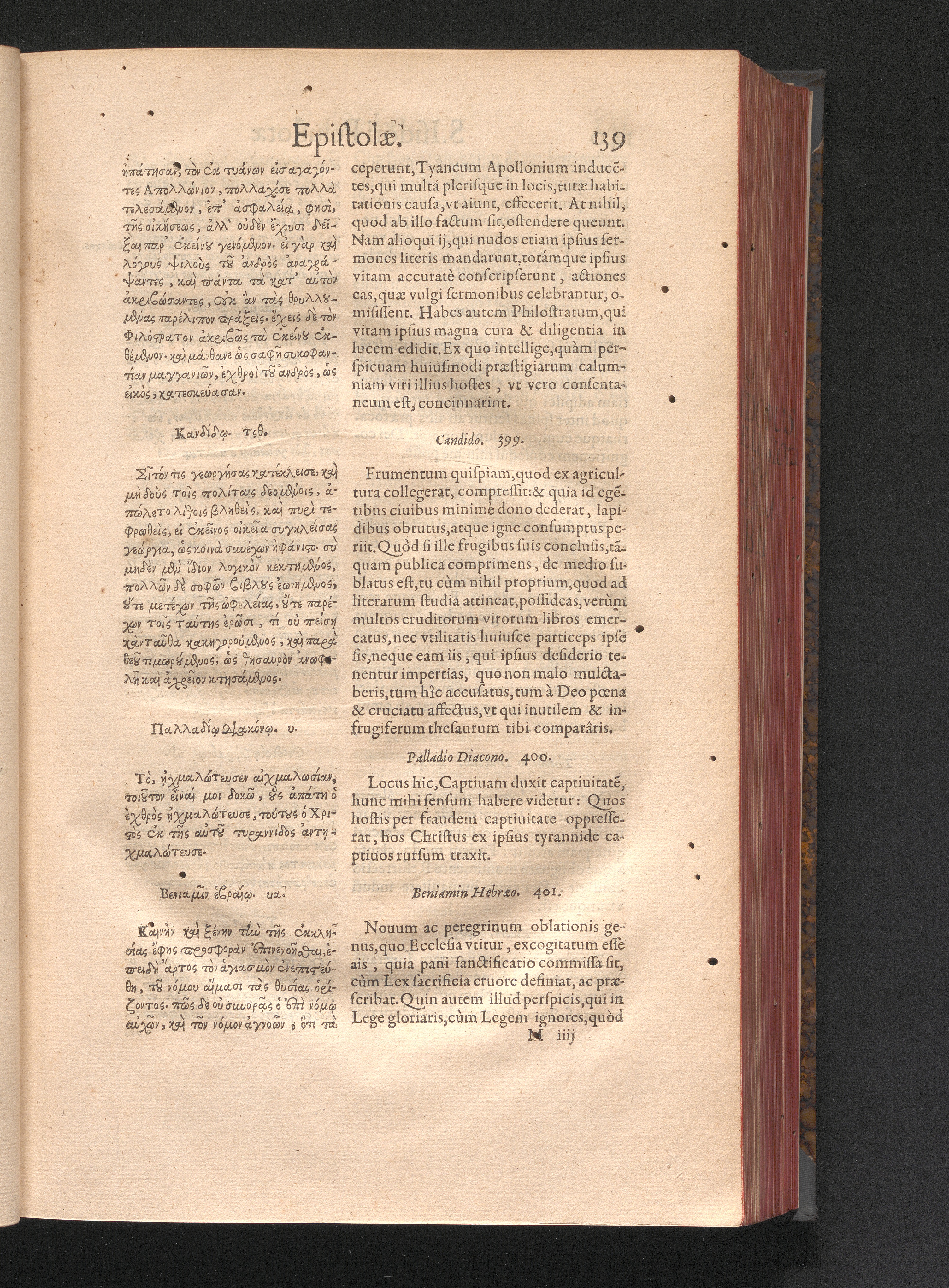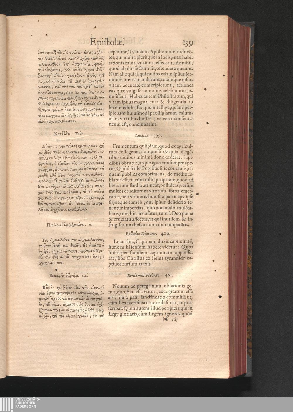 Epistolai tu hagiu Isidōru tu Pēlusiōtu / Quibus è regione accessit latina Clariss. viri Iacobi Billii Prunęi, S. Michaëlis in Eremo quondam Cœnobiarchæ, interpretatio