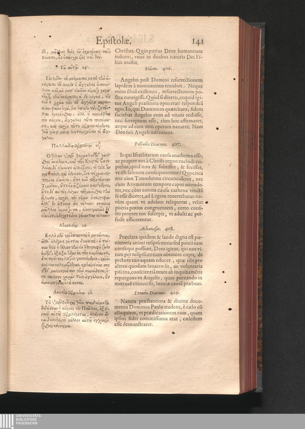 Epistolai tu hagiu Isidōru tu Pēlusiōtu / Quibus è regione accessit latina Clariss. viri Iacobi Billii Prunęi, S. Michaëlis in Eremo quondam Cœnobiarchæ, interpretatio