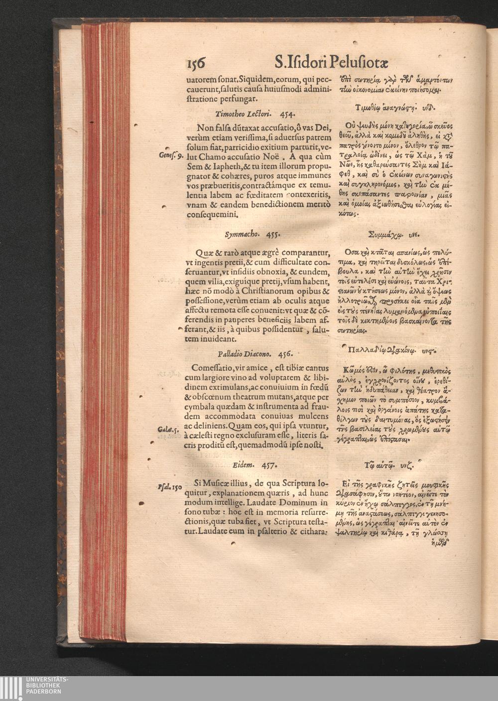 Epistolai tu hagiu Isidōru tu Pēlusiōtu / Quibus è regione accessit latina Clariss. viri Iacobi Billii Prunęi, S. Michaëlis in Eremo quondam Cœnobiarchæ, interpretatio