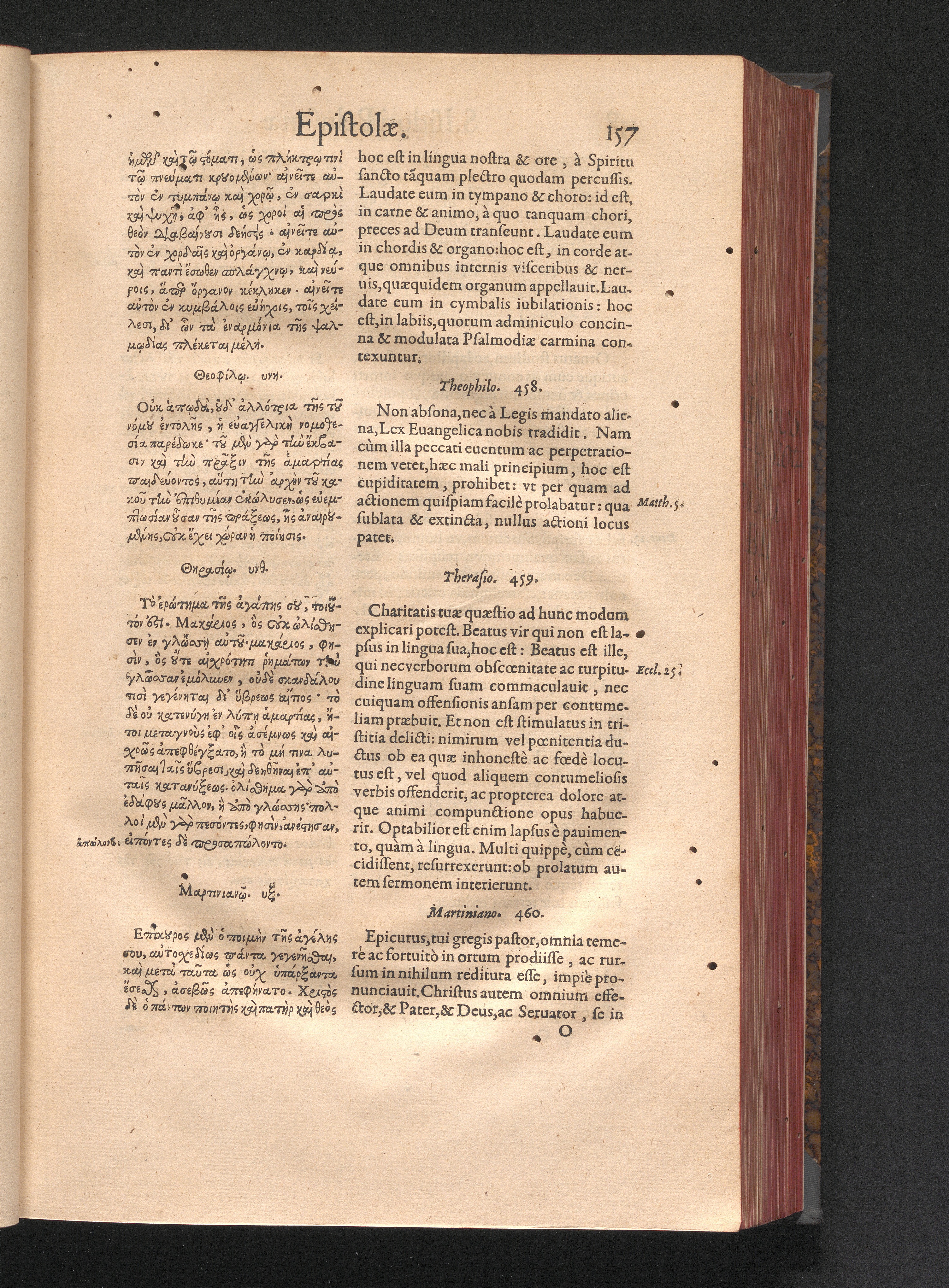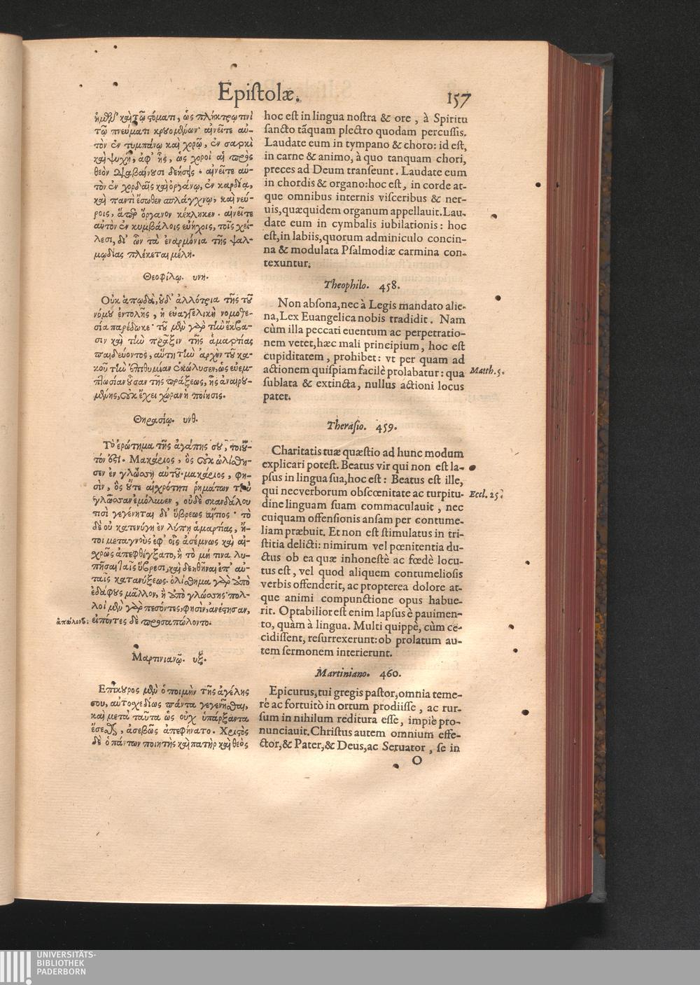 Epistolai tu hagiu Isidōru tu Pēlusiōtu / Quibus è regione accessit latina Clariss. viri Iacobi Billii Prunęi, S. Michaëlis in Eremo quondam Cœnobiarchæ, interpretatio