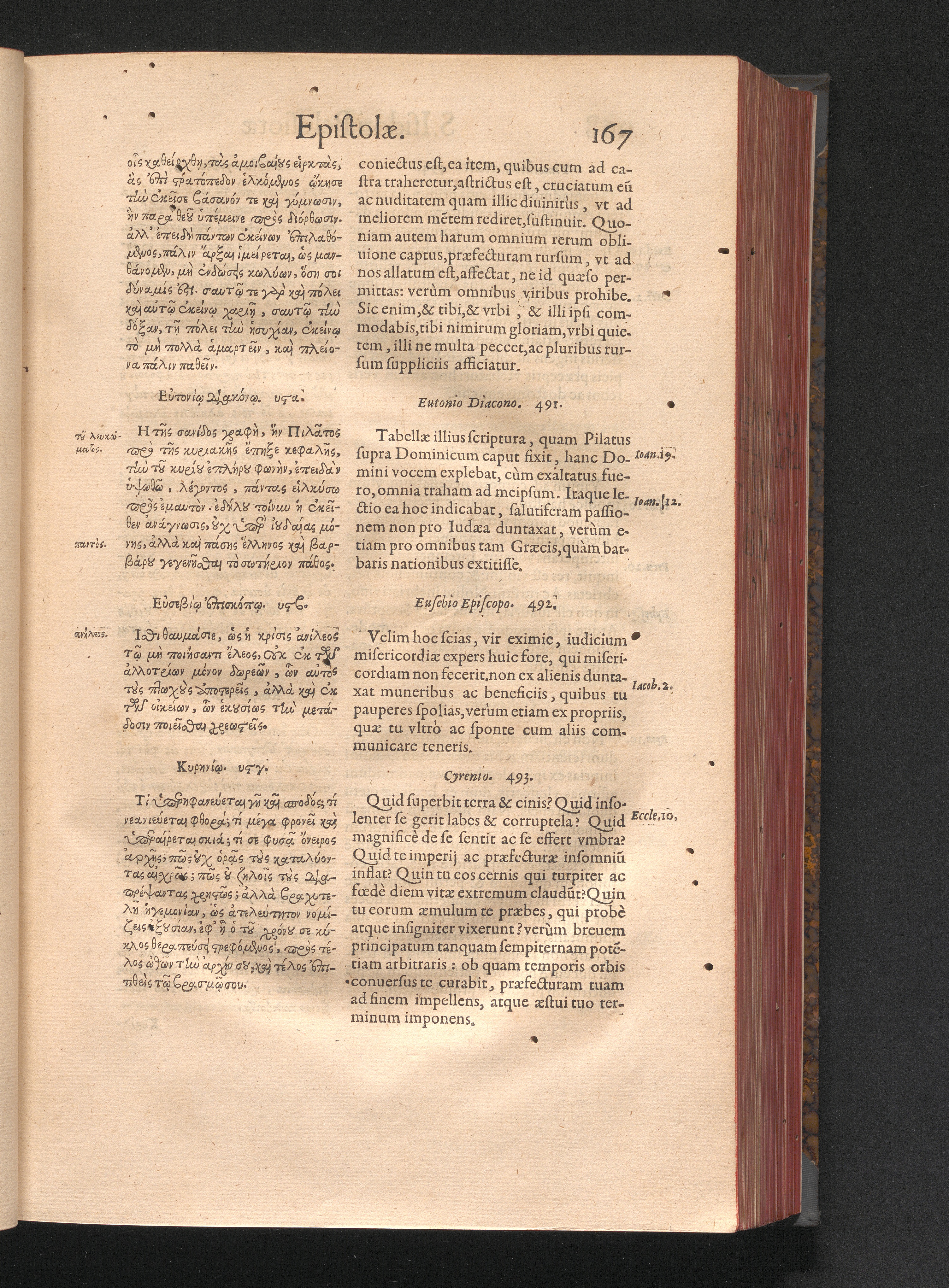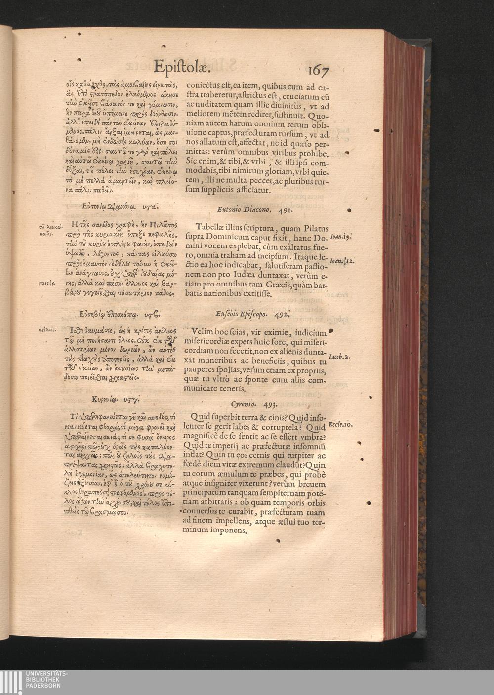 Epistolai tu hagiu Isidōru tu Pēlusiōtu / Quibus è regione accessit latina Clariss. viri Iacobi Billii Prunęi, S. Michaëlis in Eremo quondam Cœnobiarchæ, interpretatio