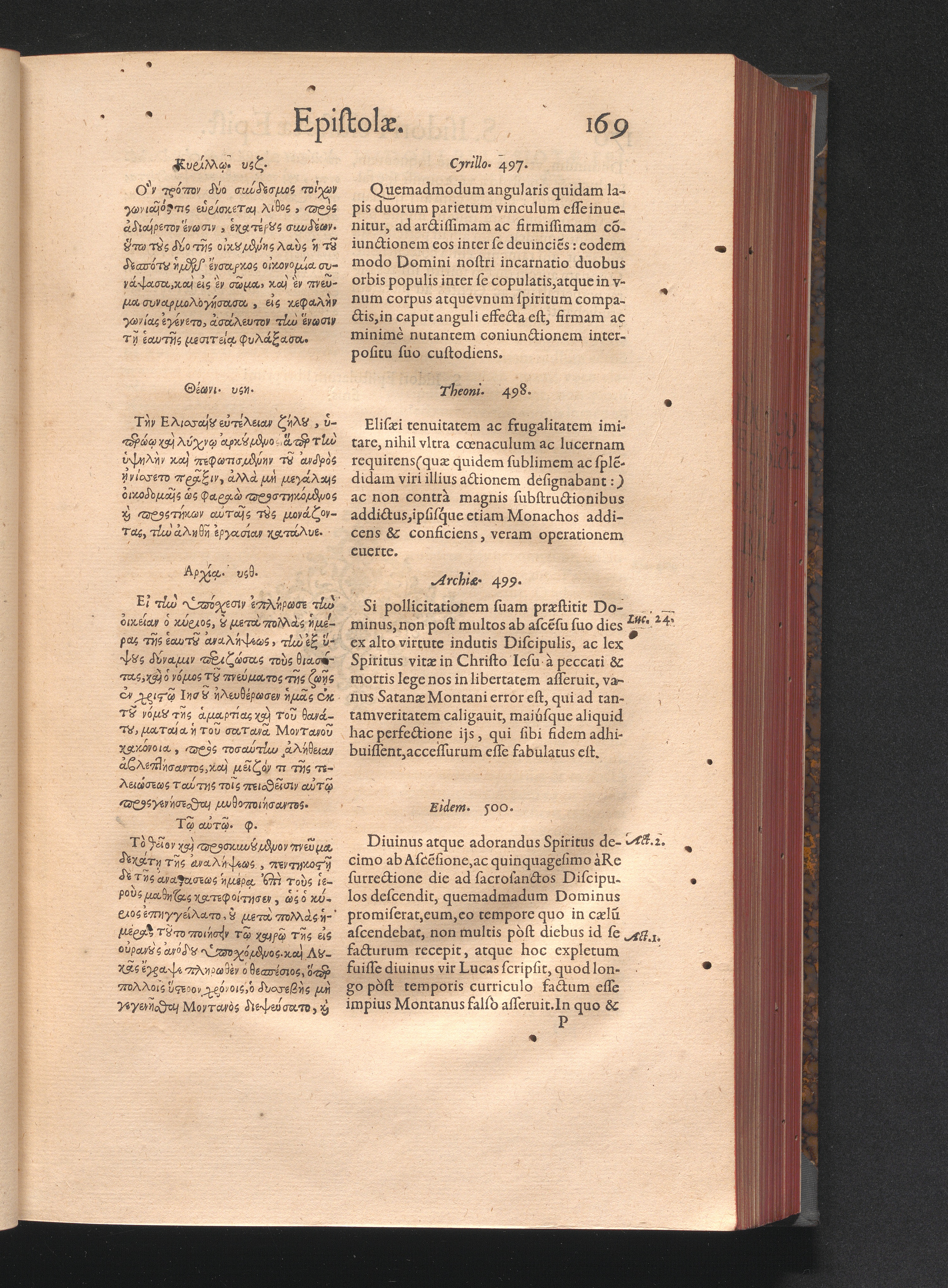 Epistolai tu hagiu Isidōru tu Pēlusiōtu / Quibus è regione accessit latina Clariss. viri Iacobi Billii Prunęi, S. Michaëlis in Eremo quondam Cœnobiarchæ, interpretatio