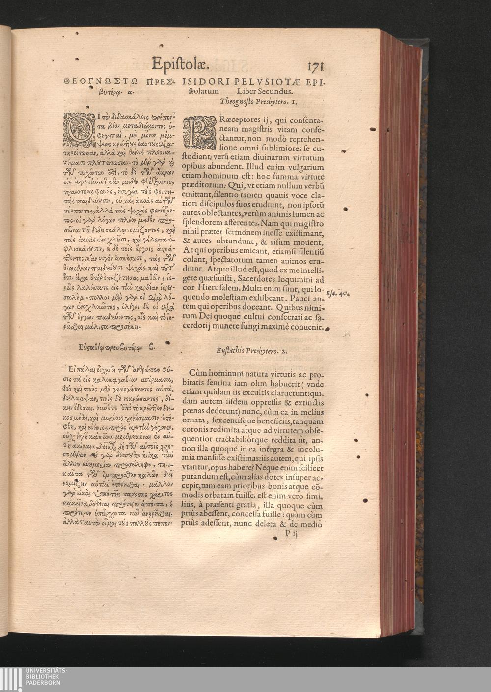 Isidori Pelvsiotæ Epistolarum Liber Secundus.