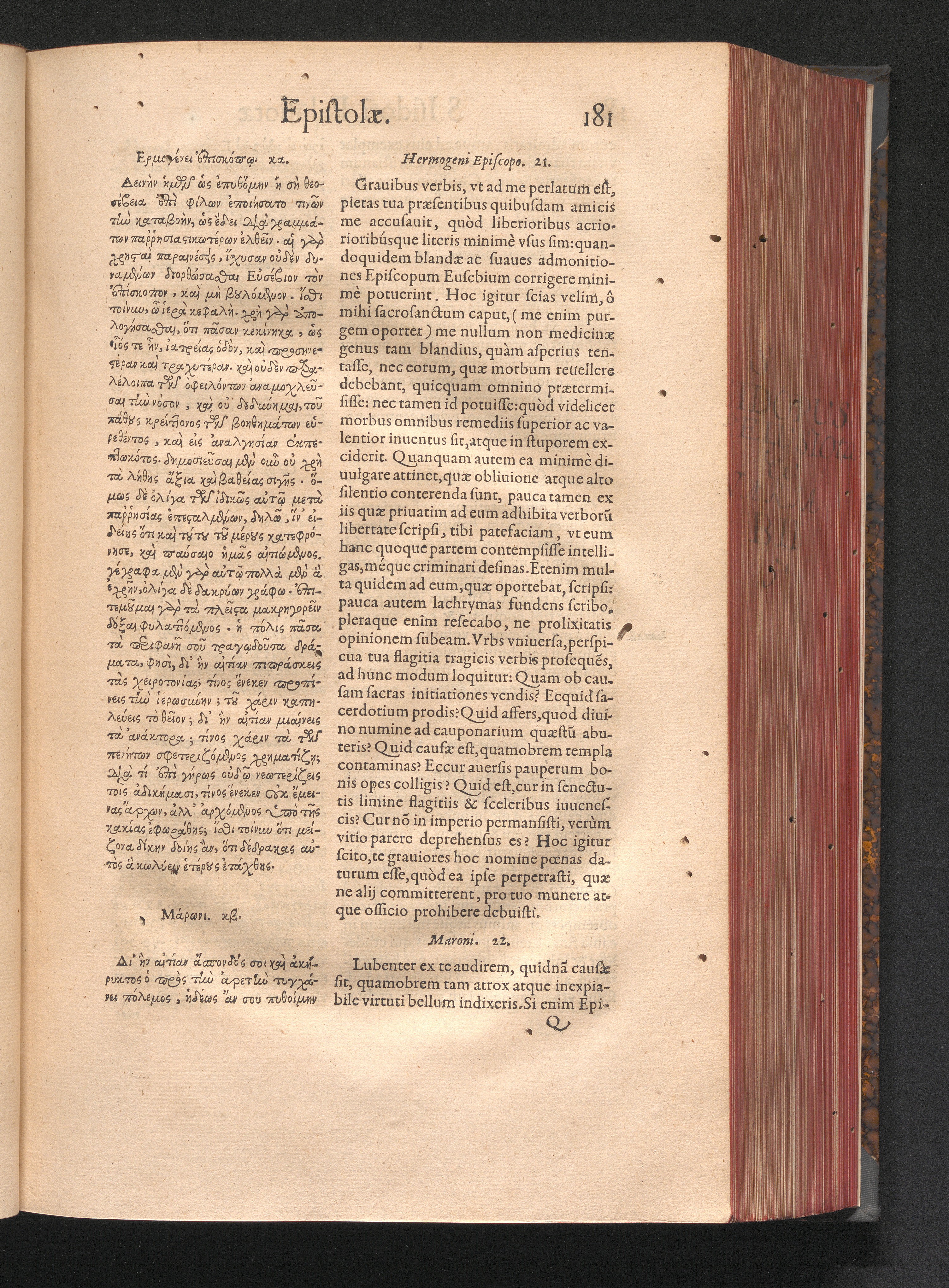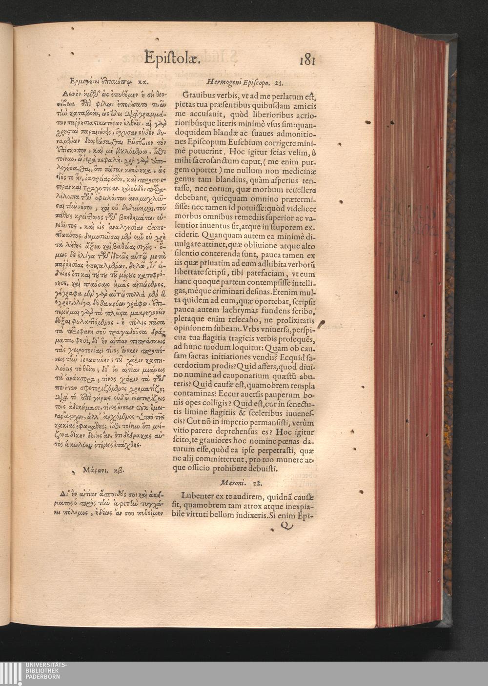 Epistolai tu hagiu Isidōru tu Pēlusiōtu / Quibus è regione accessit latina Clariss. viri Iacobi Billii Prunęi, S. Michaëlis in Eremo quondam Cœnobiarchæ, interpretatio