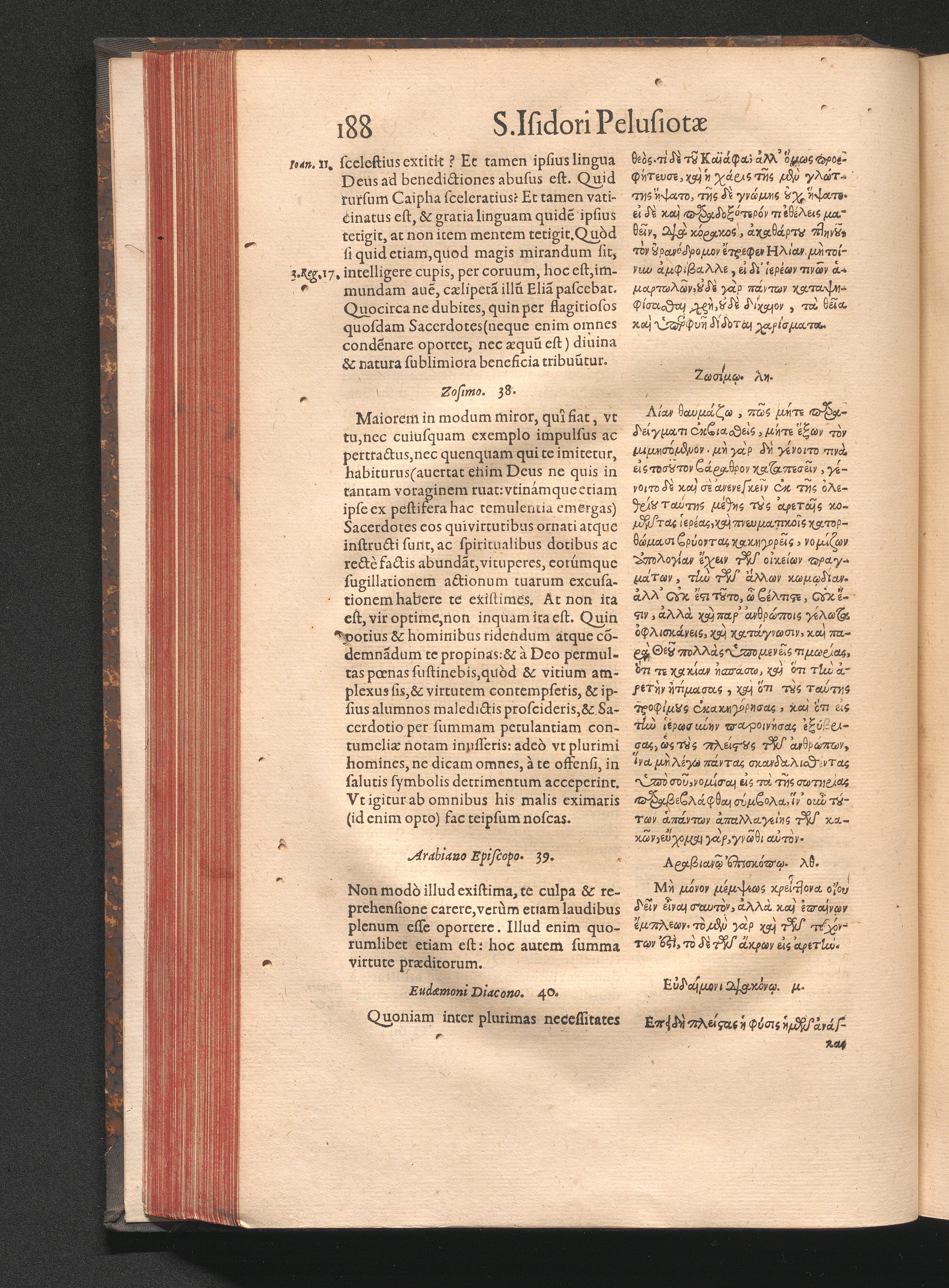 Epistolai tu hagiu Isidōru tu Pēlusiōtu / Quibus è regione accessit latina Clariss. viri Iacobi Billii Prunęi, S. Michaëlis in Eremo quondam Cœnobiarchæ, interpretatio