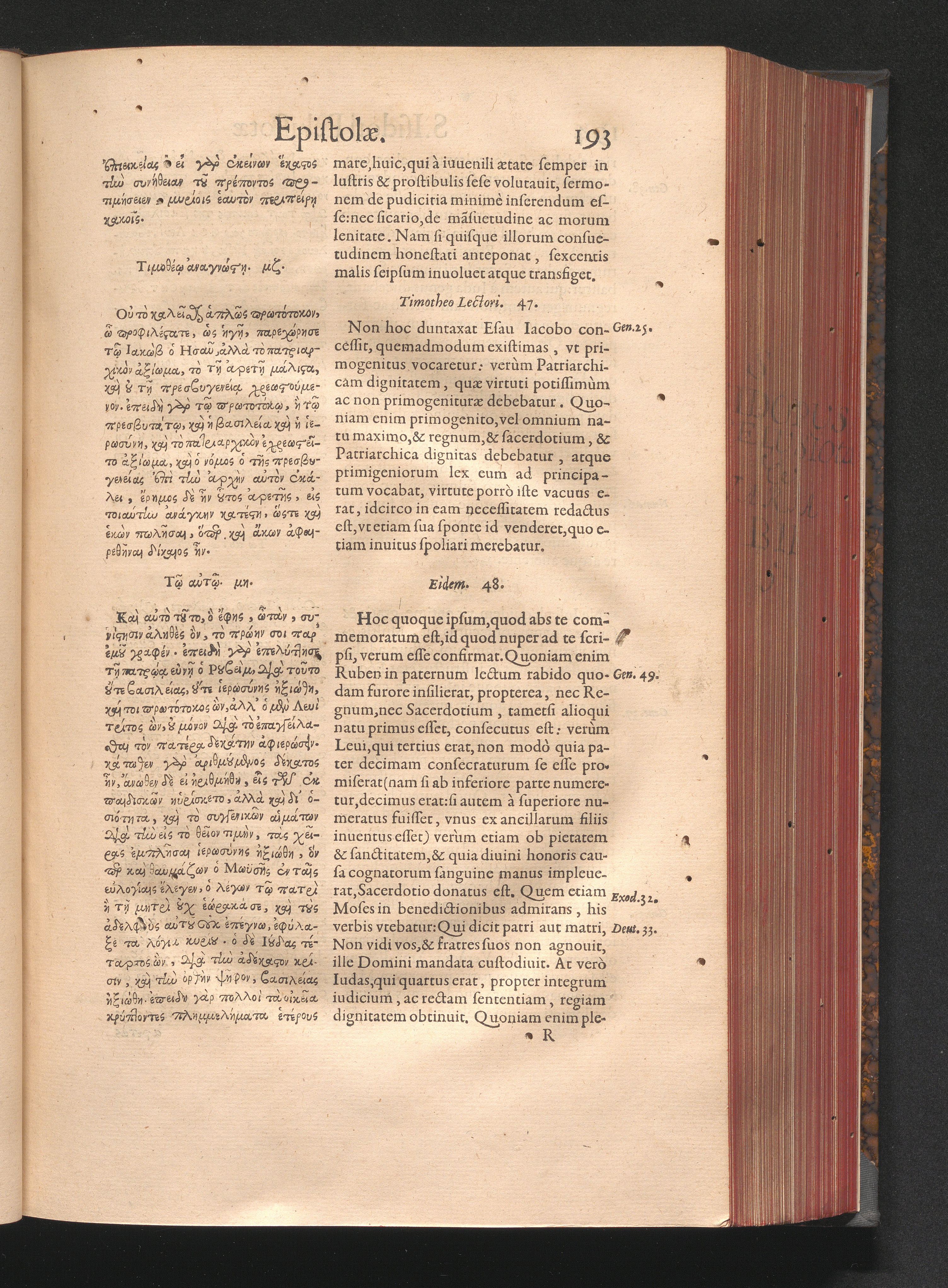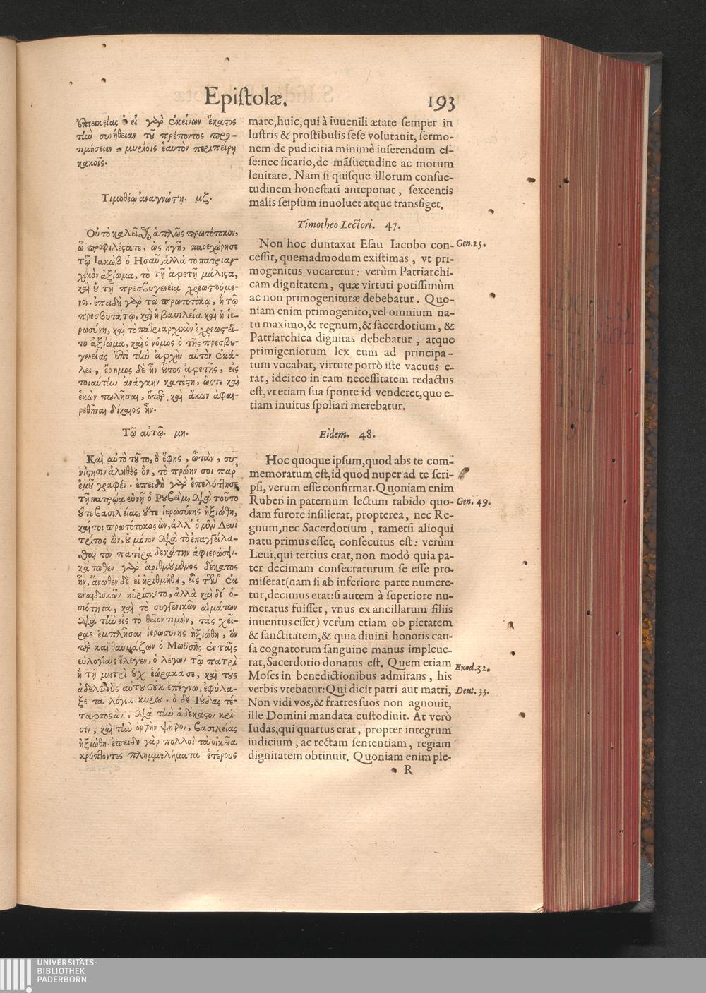 Epistolai tu hagiu Isidōru tu Pēlusiōtu / Quibus è regione accessit latina Clariss. viri Iacobi Billii Prunęi, S. Michaëlis in Eremo quondam Cœnobiarchæ, interpretatio