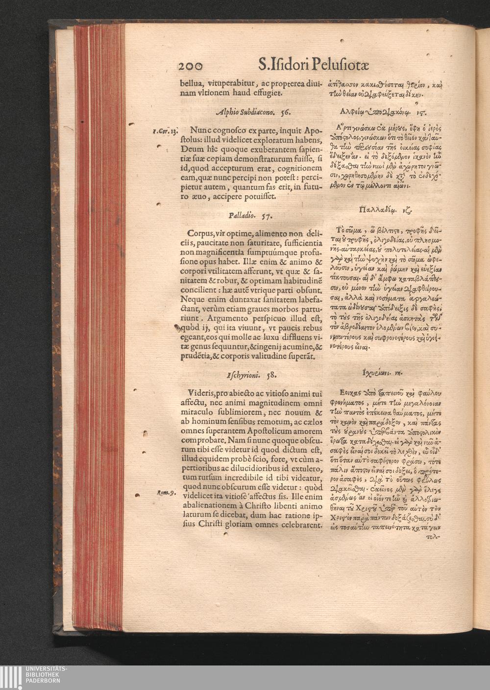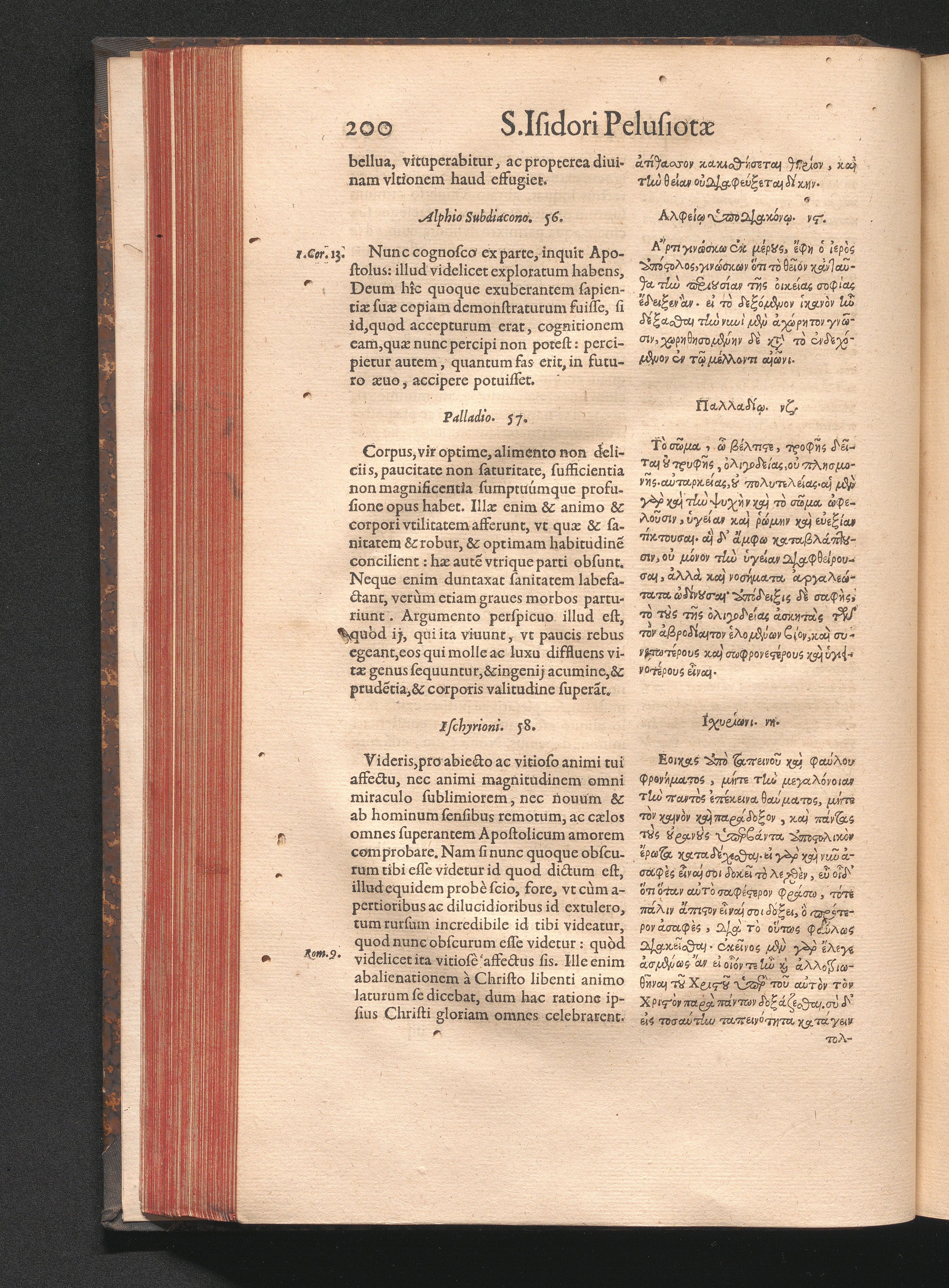 Epistolai tu hagiu Isidōru tu Pēlusiōtu / Quibus è regione accessit latina Clariss. viri Iacobi Billii Prunęi, S. Michaëlis in Eremo quondam Cœnobiarchæ, interpretatio