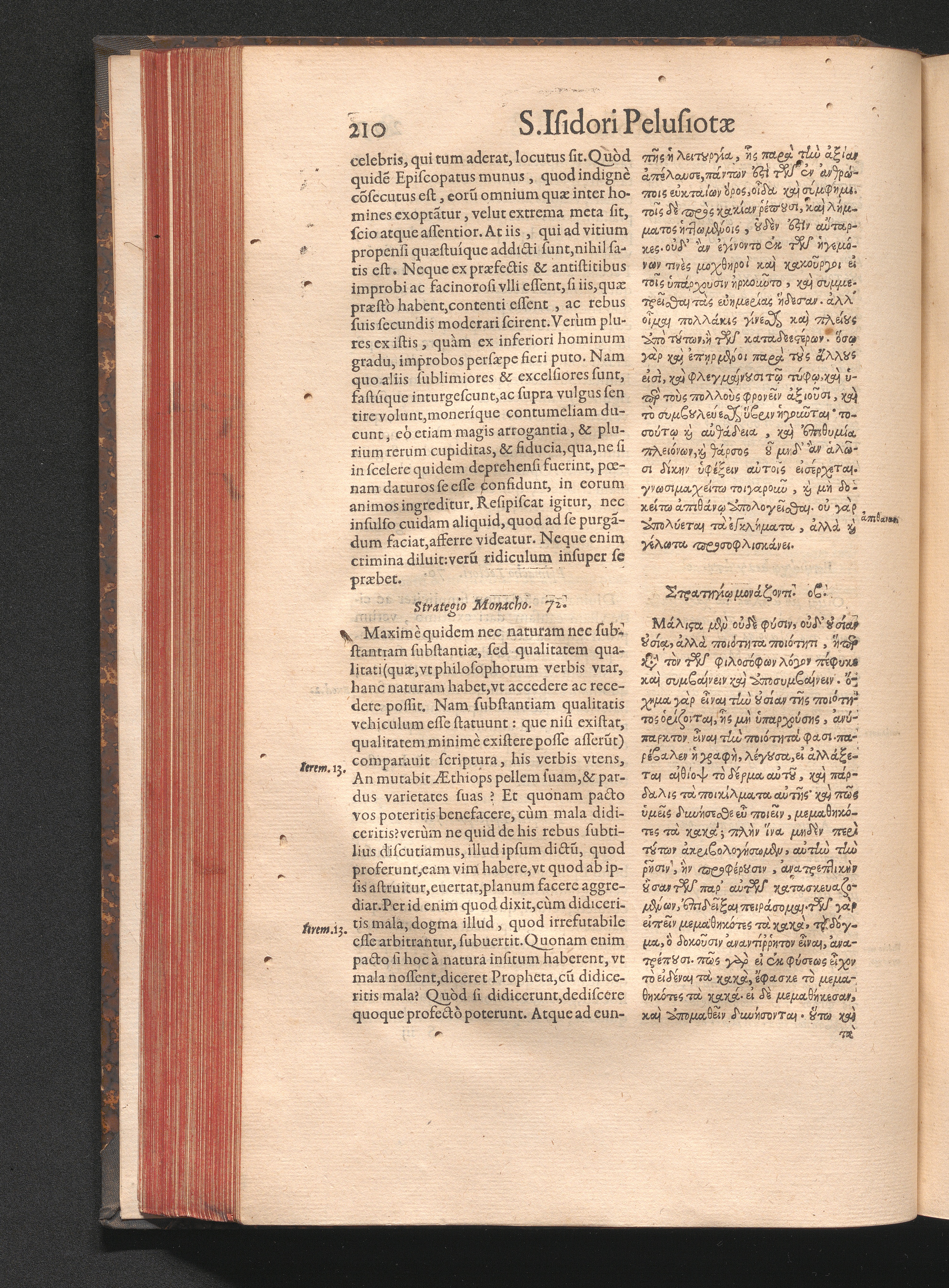 Epistolai tu hagiu Isidōru tu Pēlusiōtu / Quibus è regione accessit latina Clariss. viri Iacobi Billii Prunęi, S. Michaëlis in Eremo quondam Cœnobiarchæ, interpretatio