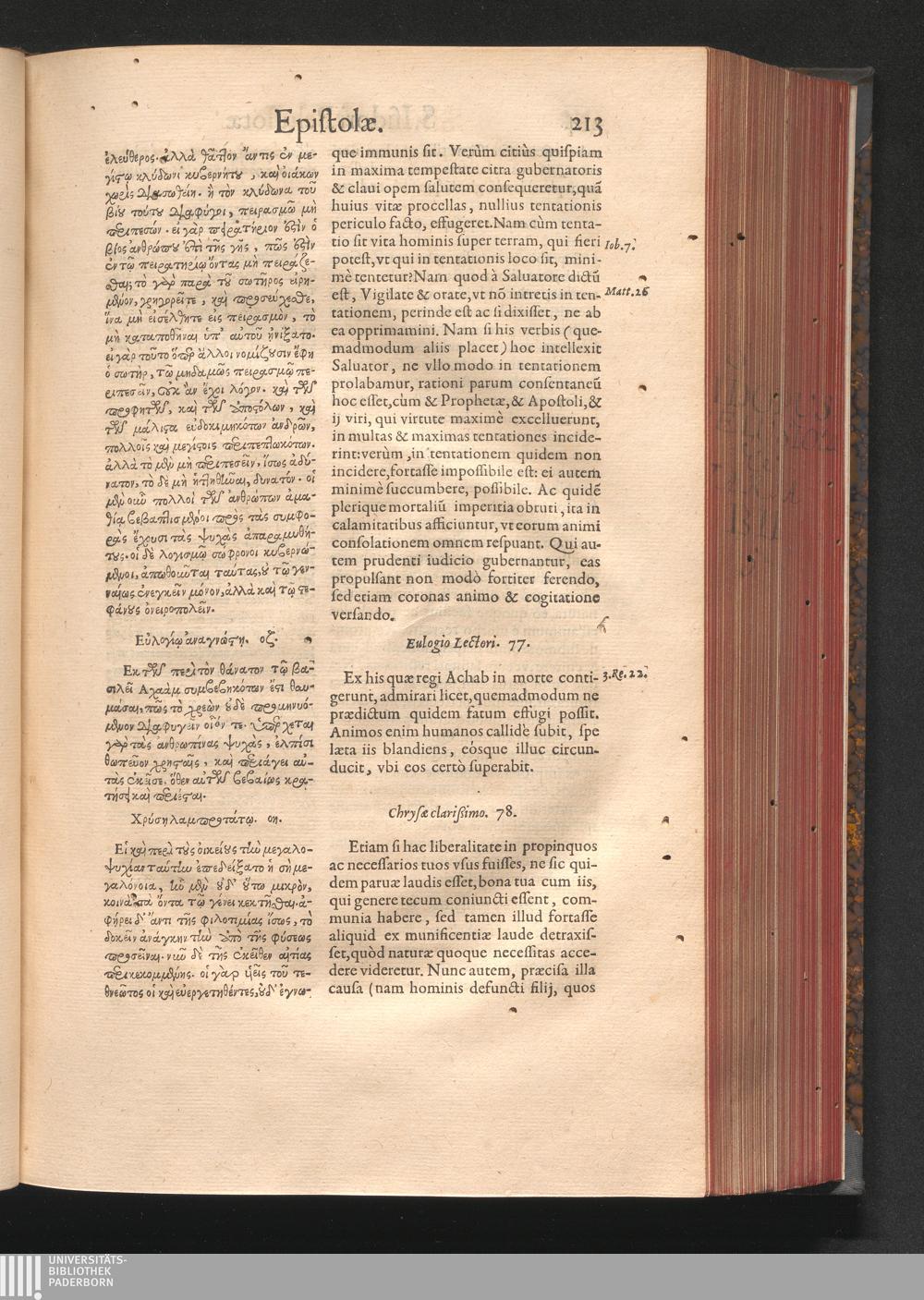 Epistolai tu hagiu Isidōru tu Pēlusiōtu / Quibus è regione accessit latina Clariss. viri Iacobi Billii Prunęi, S. Michaëlis in Eremo quondam Cœnobiarchæ, interpretatio