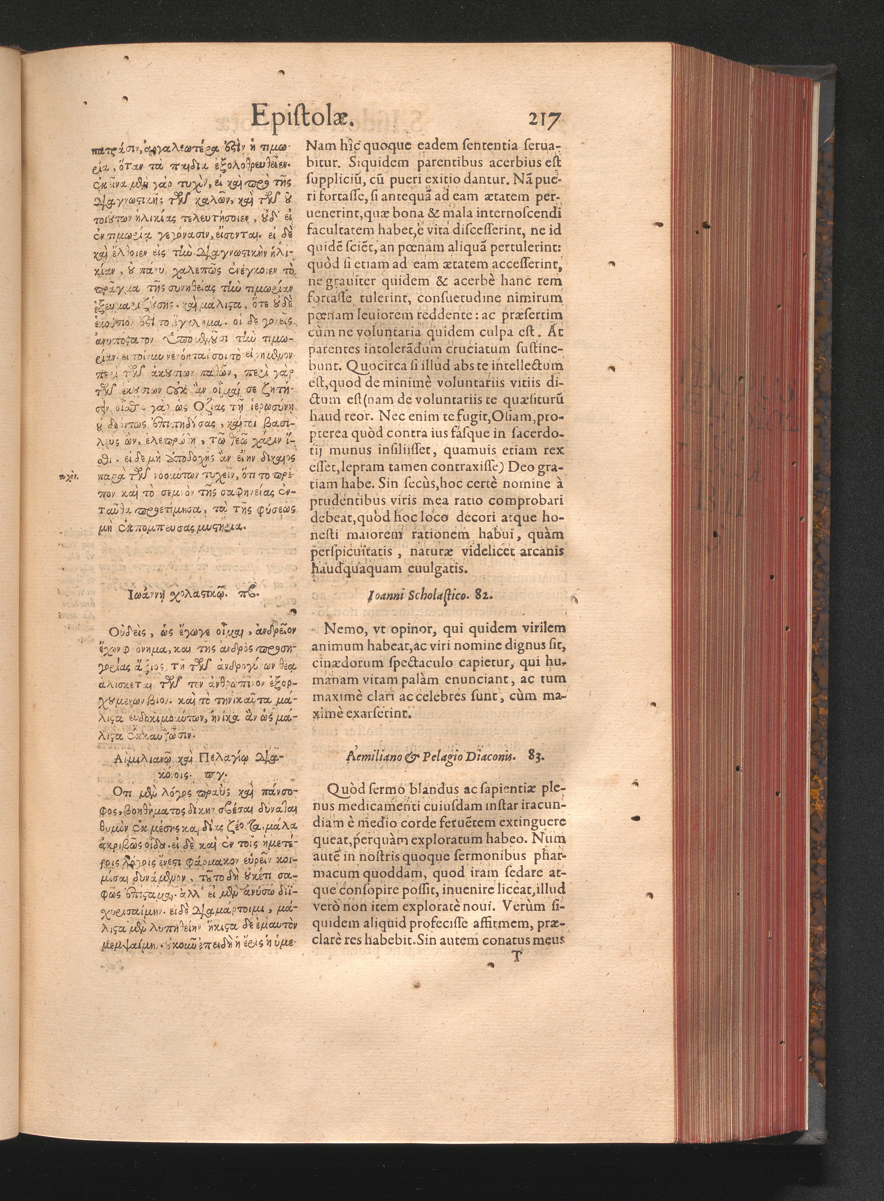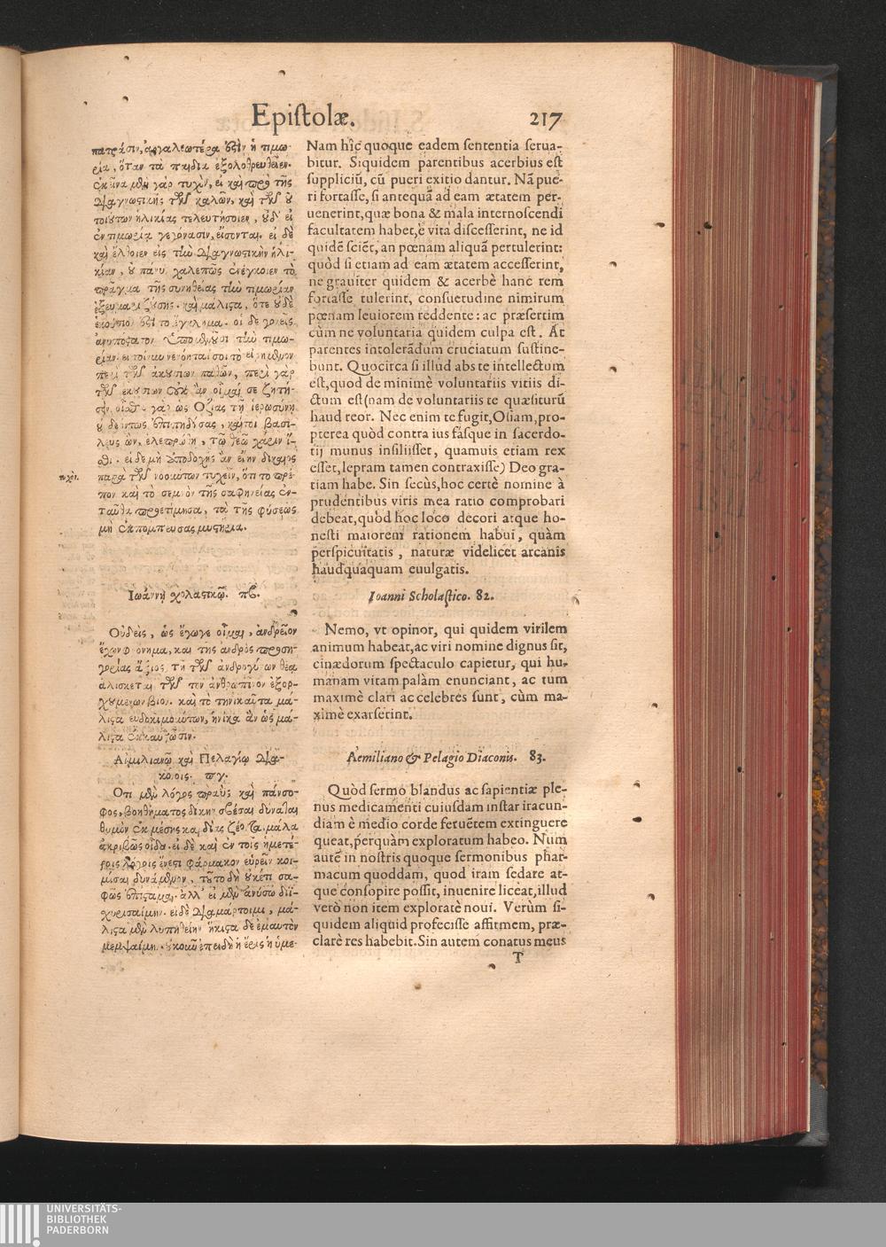 Epistolai tu hagiu Isidōru tu Pēlusiōtu / Quibus è regione accessit latina Clariss. viri Iacobi Billii Prunęi, S. Michaëlis in Eremo quondam Cœnobiarchæ, interpretatio