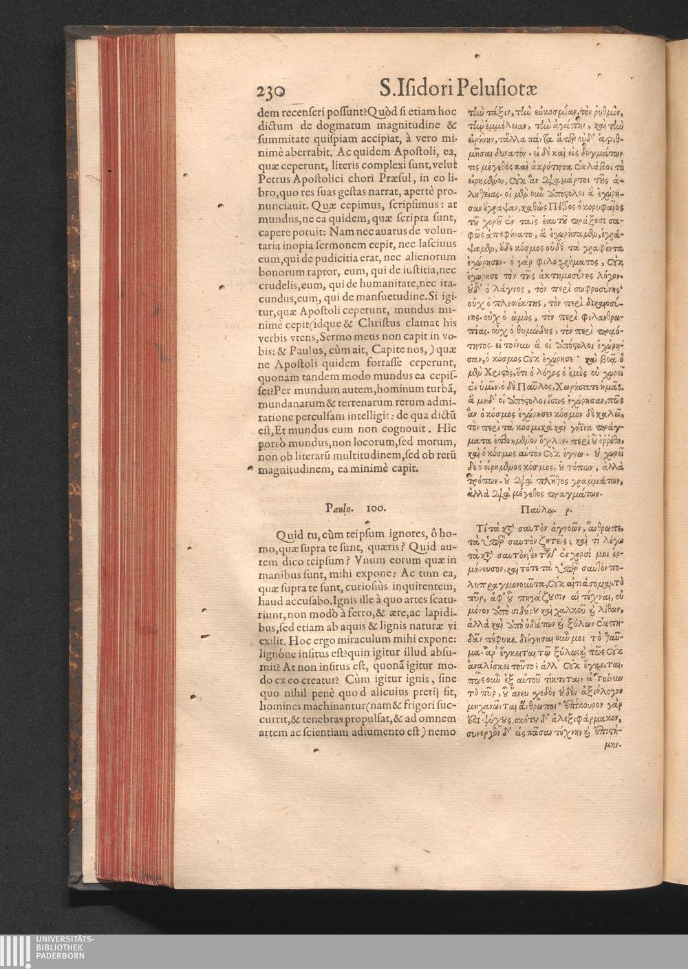 Epistolai tu hagiu Isidōru tu Pēlusiōtu / Quibus è regione accessit latina Clariss. viri Iacobi Billii Prunęi, S. Michaëlis in Eremo quondam Cœnobiarchæ, interpretatio