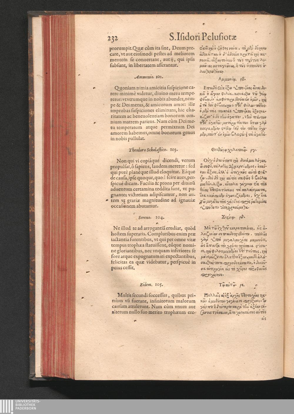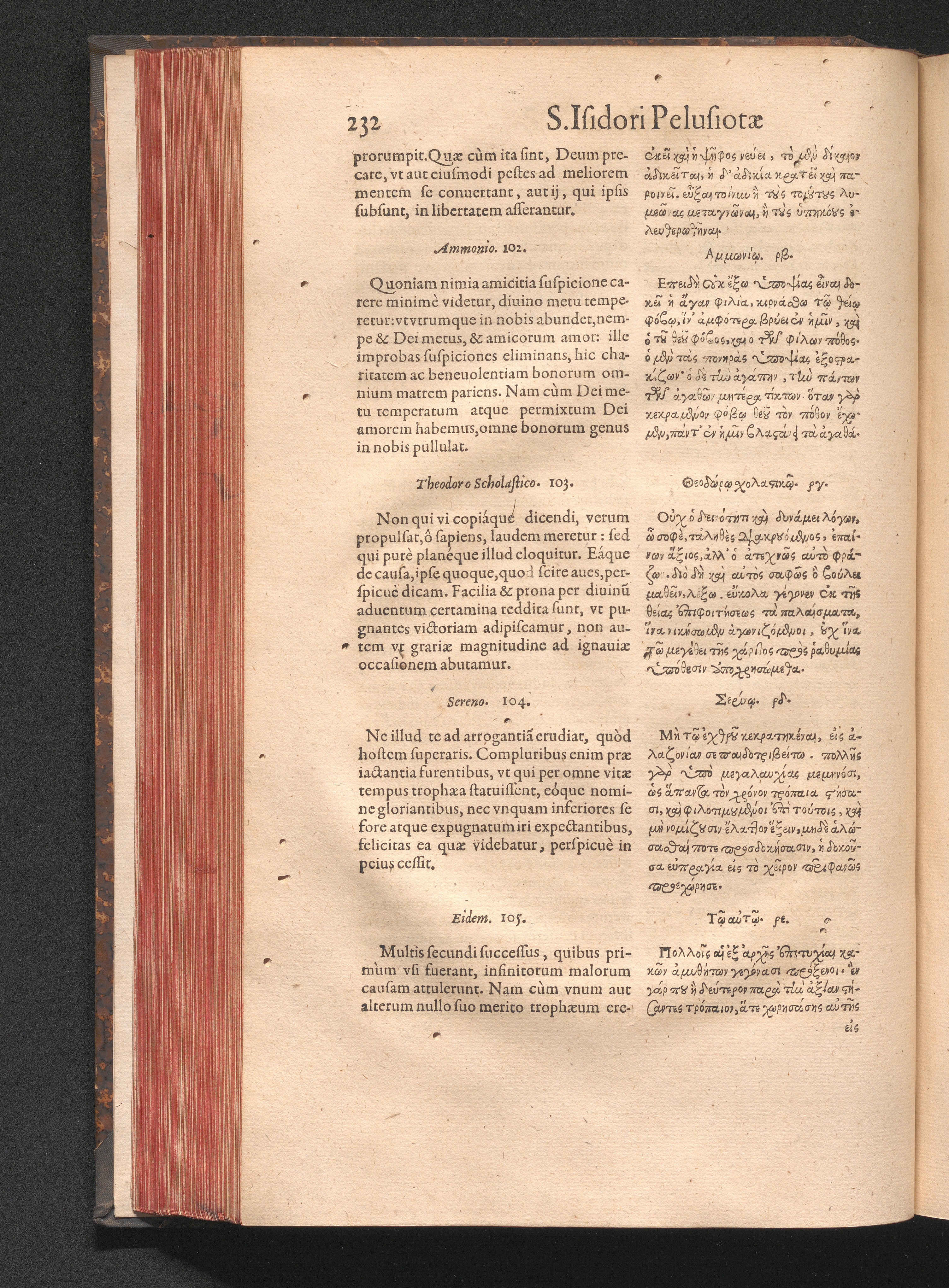 Epistolai tu hagiu Isidōru tu Pēlusiōtu / Quibus è regione accessit latina Clariss. viri Iacobi Billii Prunęi, S. Michaëlis in Eremo quondam Cœnobiarchæ, interpretatio