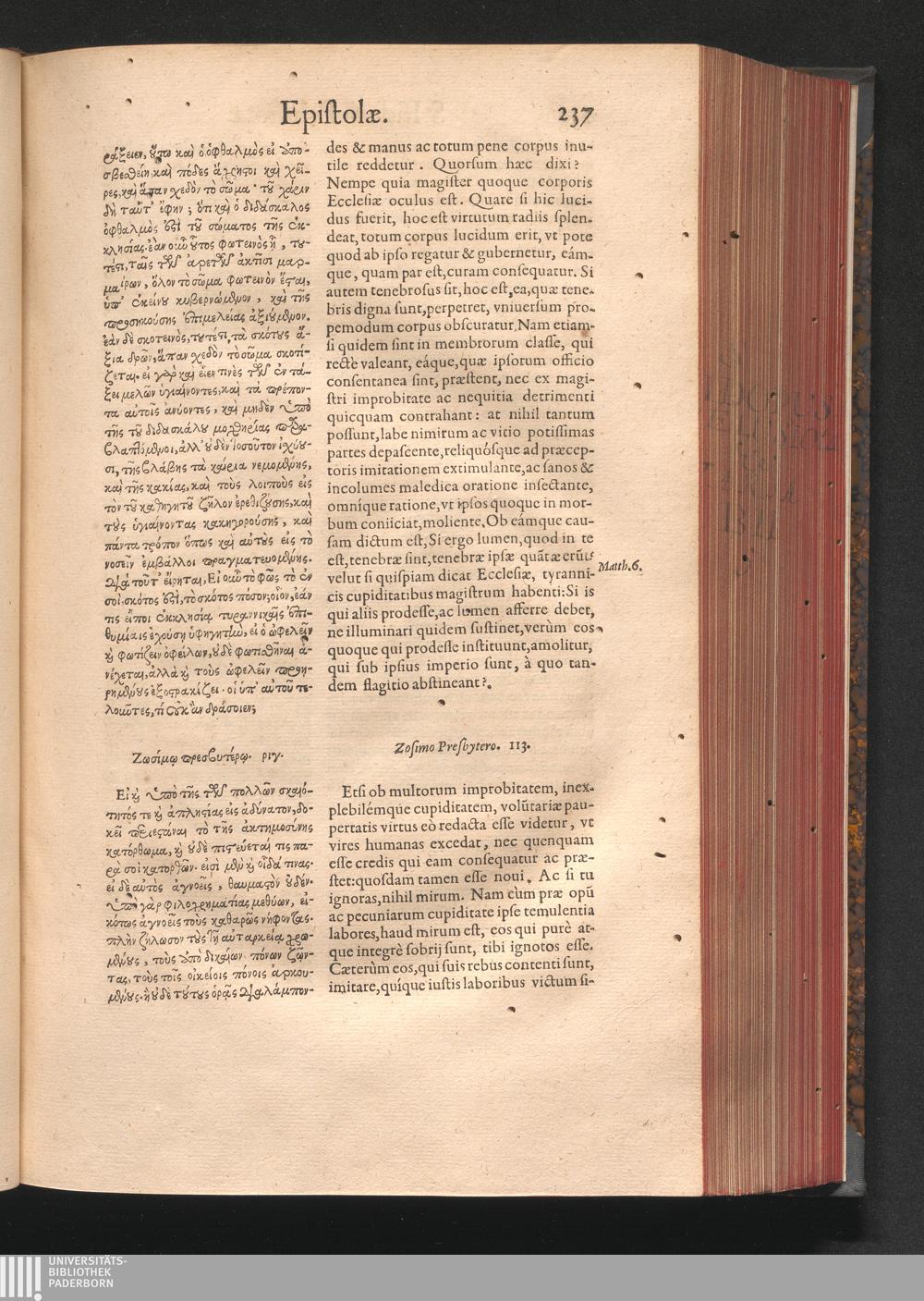 Epistolai tu hagiu Isidōru tu Pēlusiōtu / Quibus è regione accessit latina Clariss. viri Iacobi Billii Prunęi, S. Michaëlis in Eremo quondam Cœnobiarchæ, interpretatio