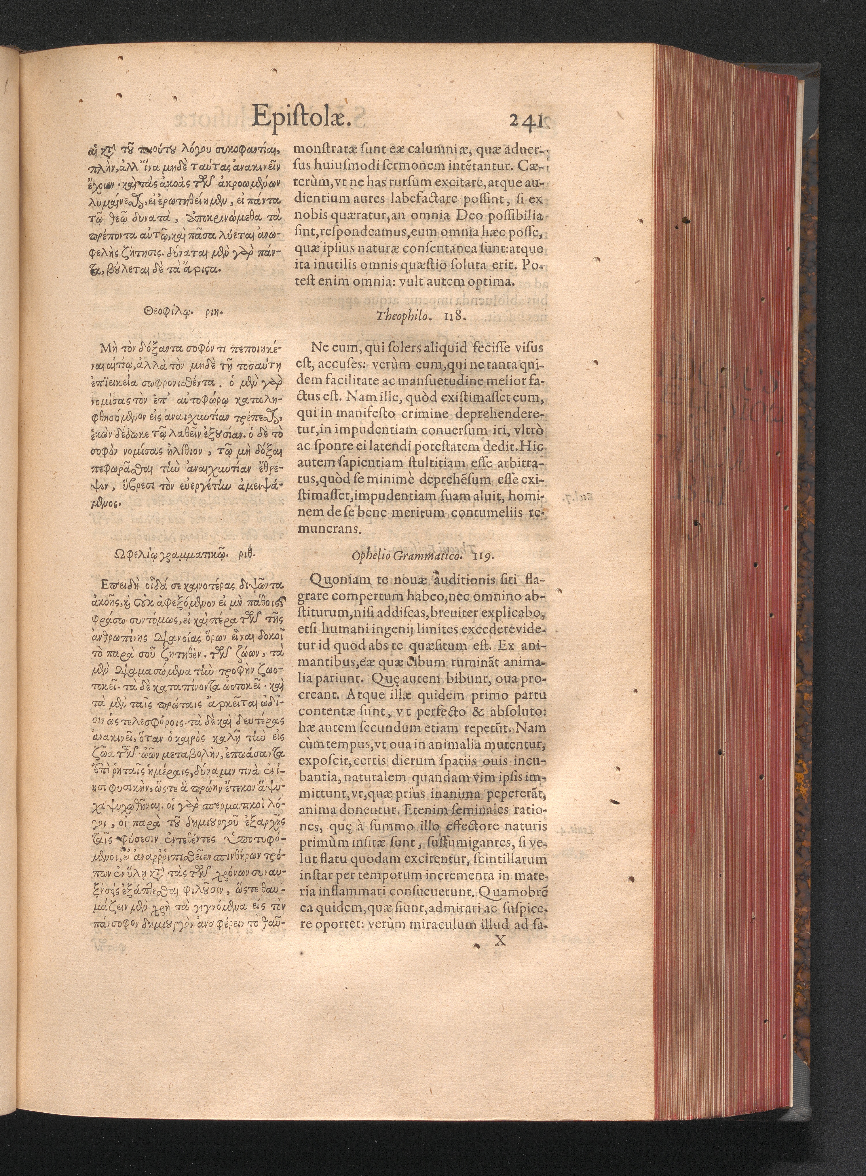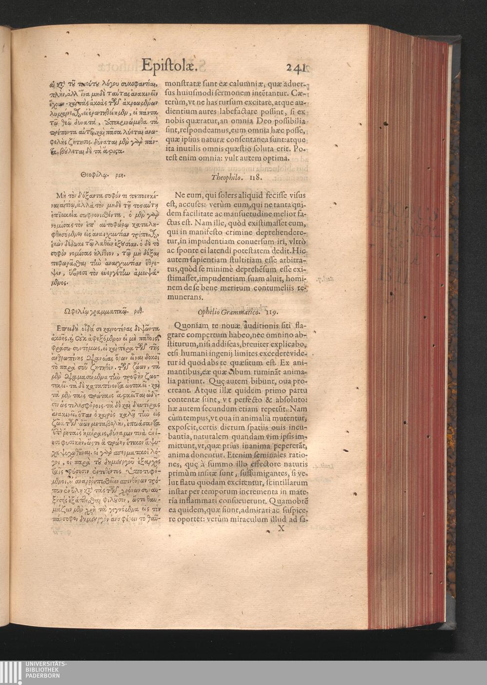 Epistolai tu hagiu Isidōru tu Pēlusiōtu / Quibus è regione accessit latina Clariss. viri Iacobi Billii Prunęi, S. Michaëlis in Eremo quondam Cœnobiarchæ, interpretatio