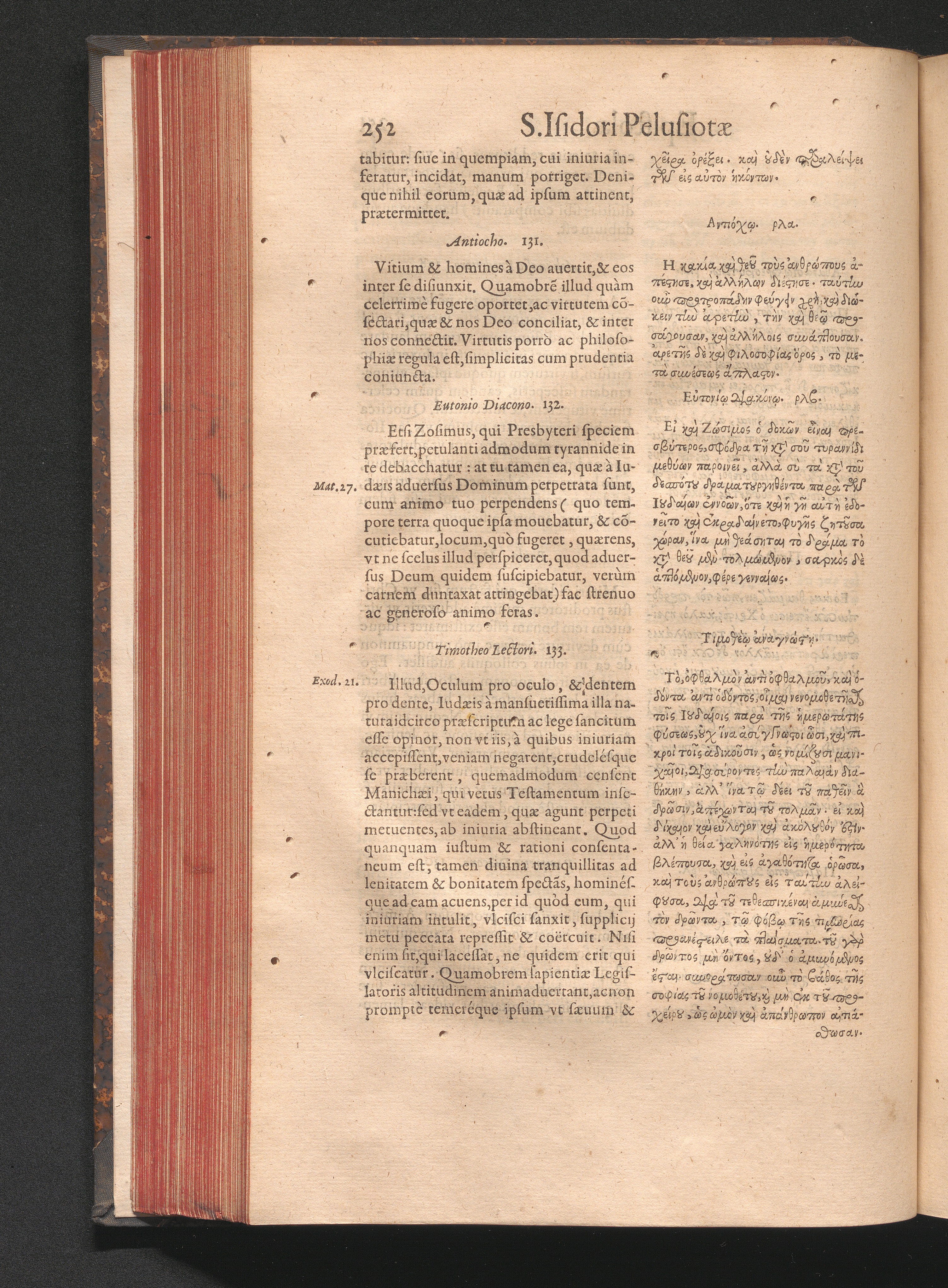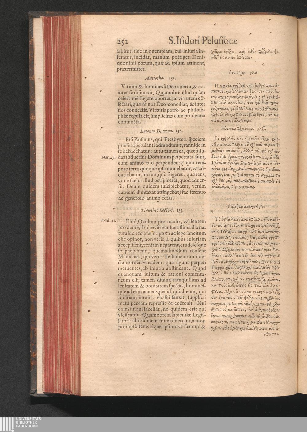 Epistolai tu hagiu Isidōru tu Pēlusiōtu / Quibus è regione accessit latina Clariss. viri Iacobi Billii Prunęi, S. Michaëlis in Eremo quondam Cœnobiarchæ, interpretatio