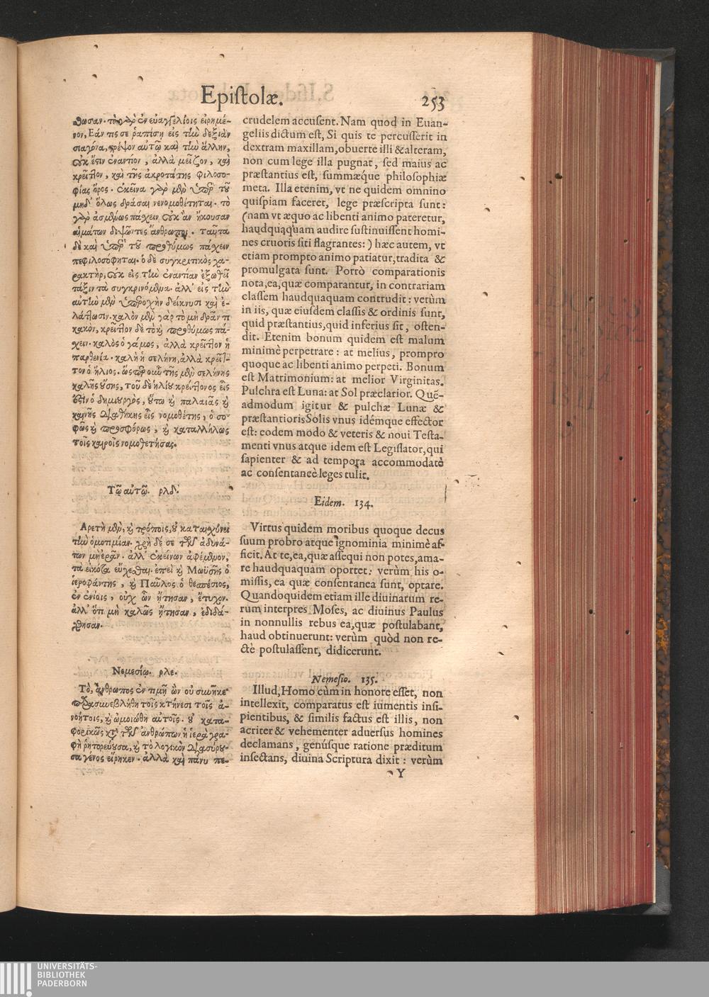 Epistolai tu hagiu Isidōru tu Pēlusiōtu / Quibus è regione accessit latina Clariss. viri Iacobi Billii Prunęi, S. Michaëlis in Eremo quondam Cœnobiarchæ, interpretatio
