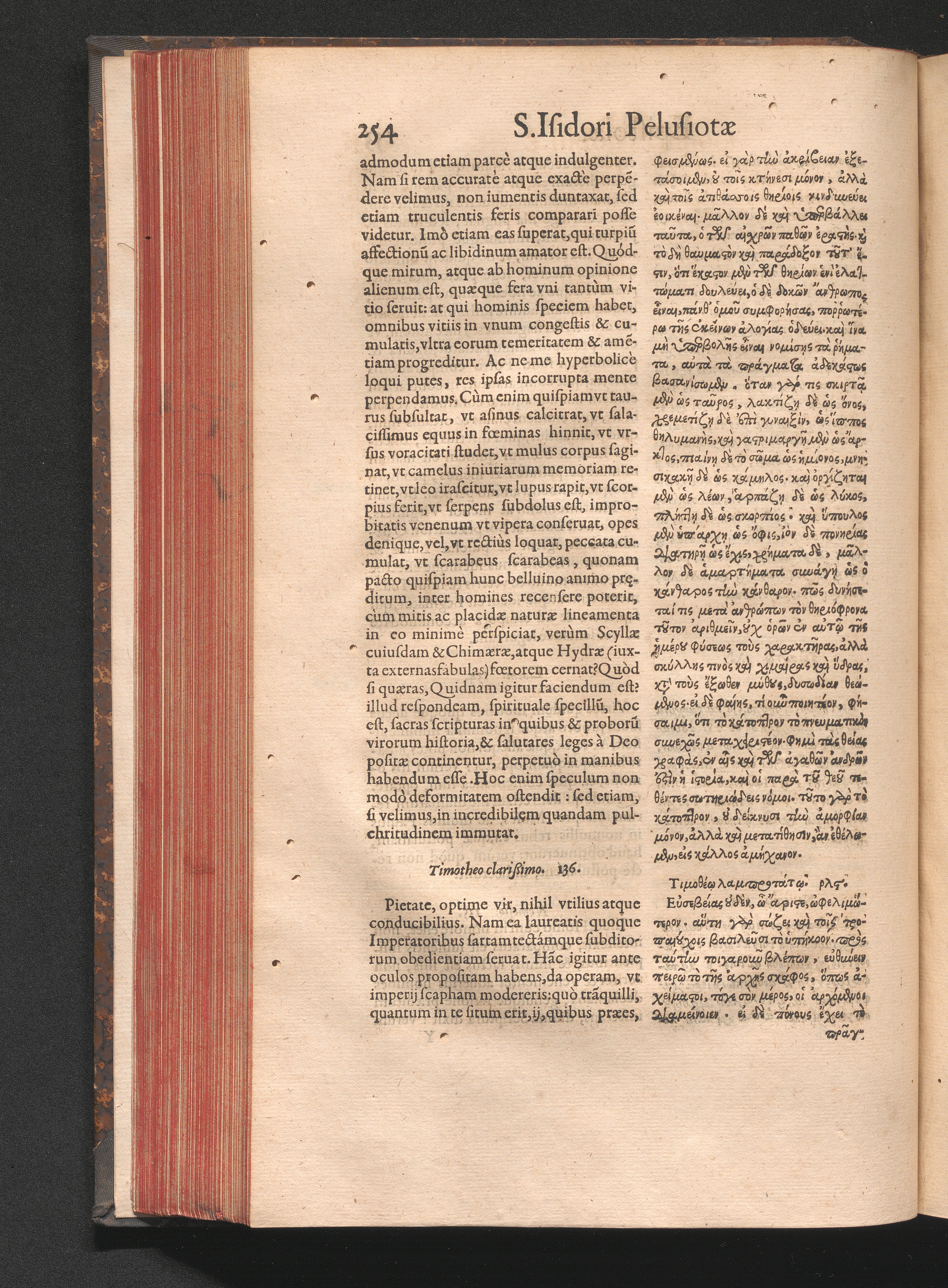 Epistolai tu hagiu Isidōru tu Pēlusiōtu / Quibus è regione accessit latina Clariss. viri Iacobi Billii Prunęi, S. Michaëlis in Eremo quondam Cœnobiarchæ, interpretatio